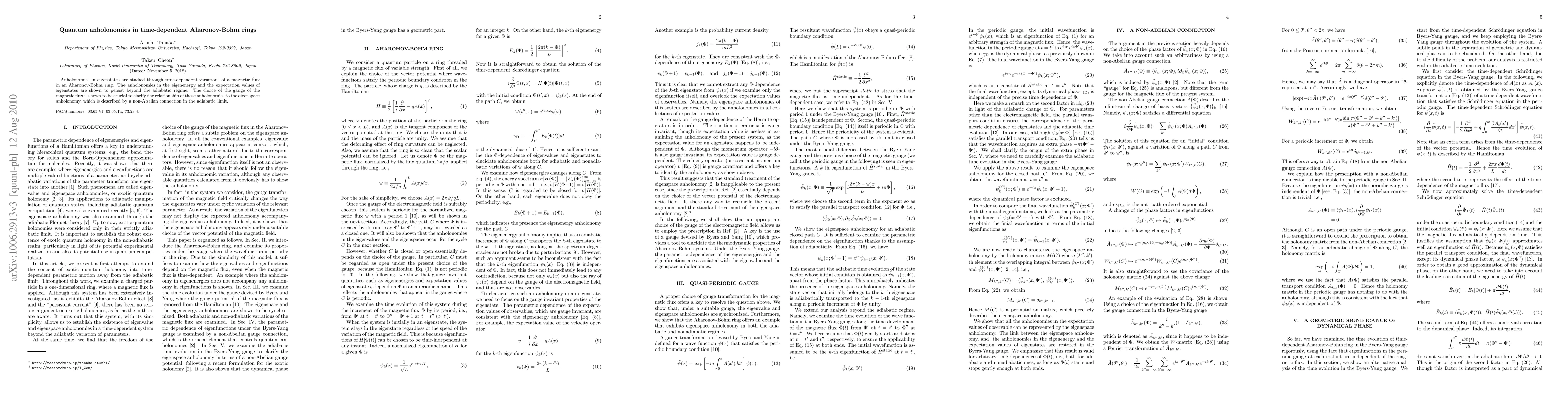 Anholonomies in eigenstates are studied through time-dependent variations of a magnetic flux in an Aharonov-Bohm ring. The anholonomies in the eigenenergy and the expectation values of eigenstates are shown to persist beyond the adiabatic regime. The choice of the gauge of the magnetic flux is shown to be crucial to clarify the relationship of these anholonomies to the eigenspace anholonomy, which is described by a non-Abelian connection in the adiabatic limit.