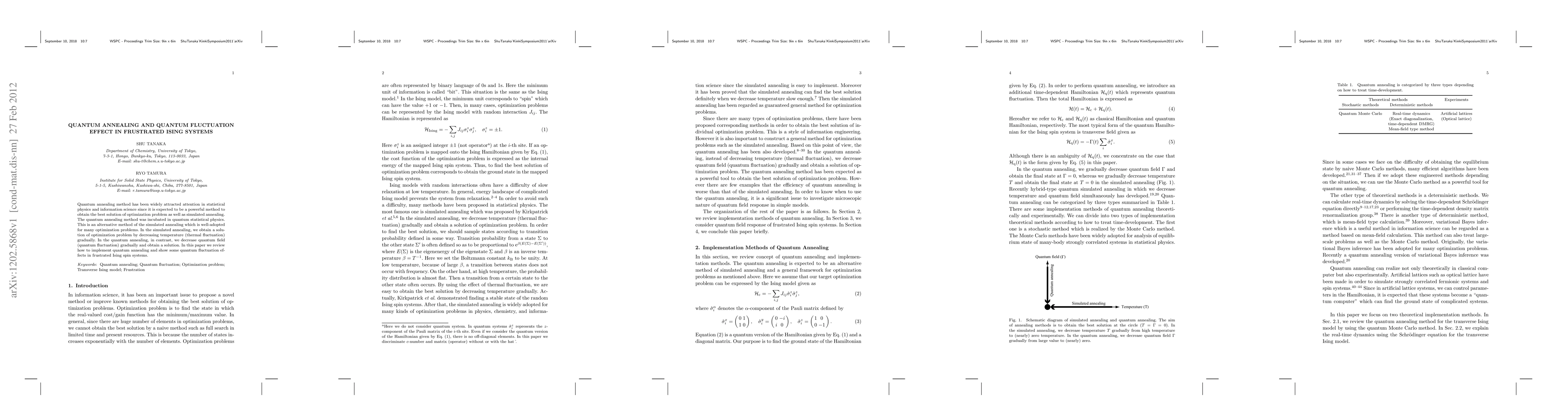 This paper reviews the quantum annealing method, contrasting it with simulated annealing by focusing on the gradual reduction of quantum fluctuations rather than thermal fluctuations. It explores the quantum fluctuation effects in frustrated Ising spin systems, highlighting the quantum annealing's potential in optimization problems.