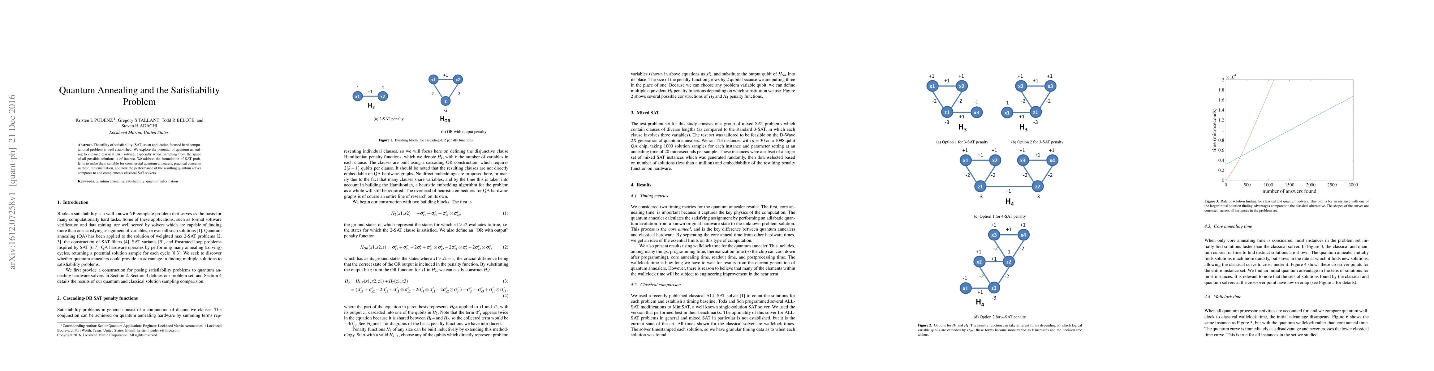 The utility of satisfiability (SAT) as an application focused hard computational problem is well established. We explore the potential of quantum annealing to enhance classical SAT solving, especially where sampling from the space of all possible solutions is of interest. We address the formulation of SAT problems to make them suitable for commercial quantum annealers, practical concerns in their implementation, and how the performance of the resulting quantum solver compares to and complements classical SAT solvers.