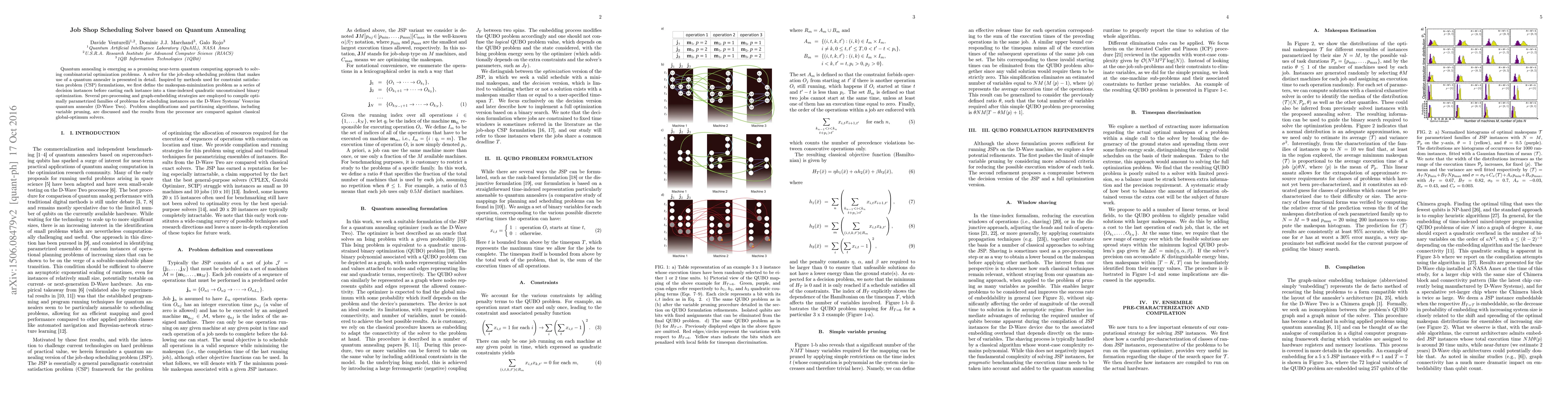 A quantum annealing solver was developed to solve the job-shop scheduling problem, achieving comparable results with state-of-the-art solvers for up to six jobs and six machines.