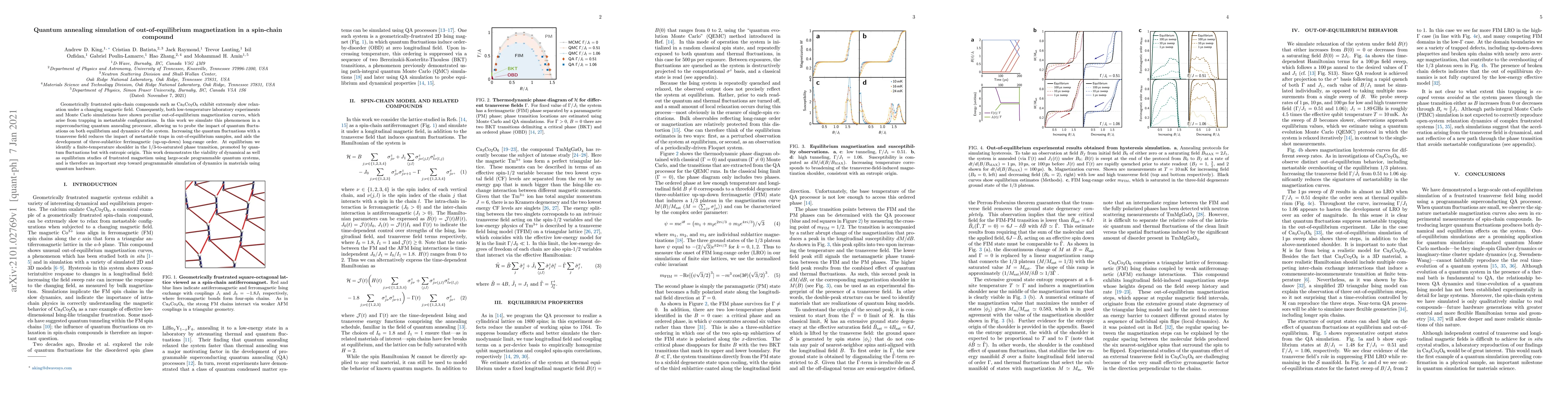 Researchers used a quantum annealing processor to study magnetization in a spin-chain compound, finding that increased quantum fluctuations aid the development of long-range order and reduce metastable traps. The findings demonstrate the viability of dynamic simulation of frustrated magnetism using large-scale programmable quantum systems.