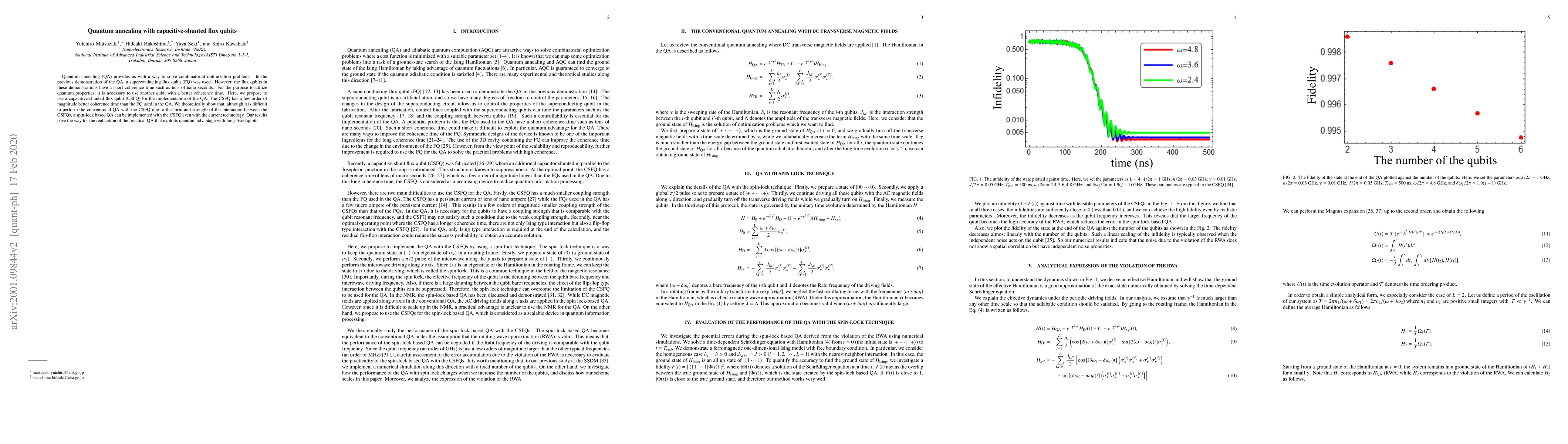 This paper proposes using capacitive-shunted flux qubits (CSFQ) for quantum annealing (QA) due to their significantly improved coherence time compared to traditional superconducting flux qubits (FQ). It suggests that while conventional QA is challenging with CSFQs, a spin-lock based approach can be viable, paving the way for practical QA utilizing long-lived qubits.