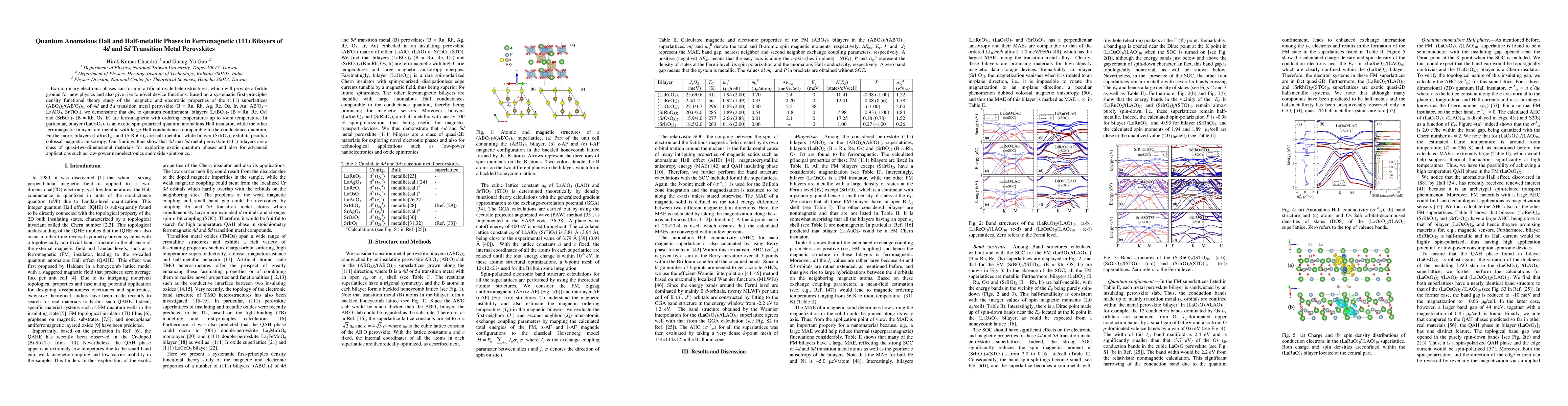 This study reveals that ferromagnetic (111) bilayers of 4d and 5d transition metal perovskites exhibit extraordinary quantum phases, including quantum anomalous Hall insulators and half-metallic behaviors, suggesting potential for low-power nanoelectronics and oxide spintronics.