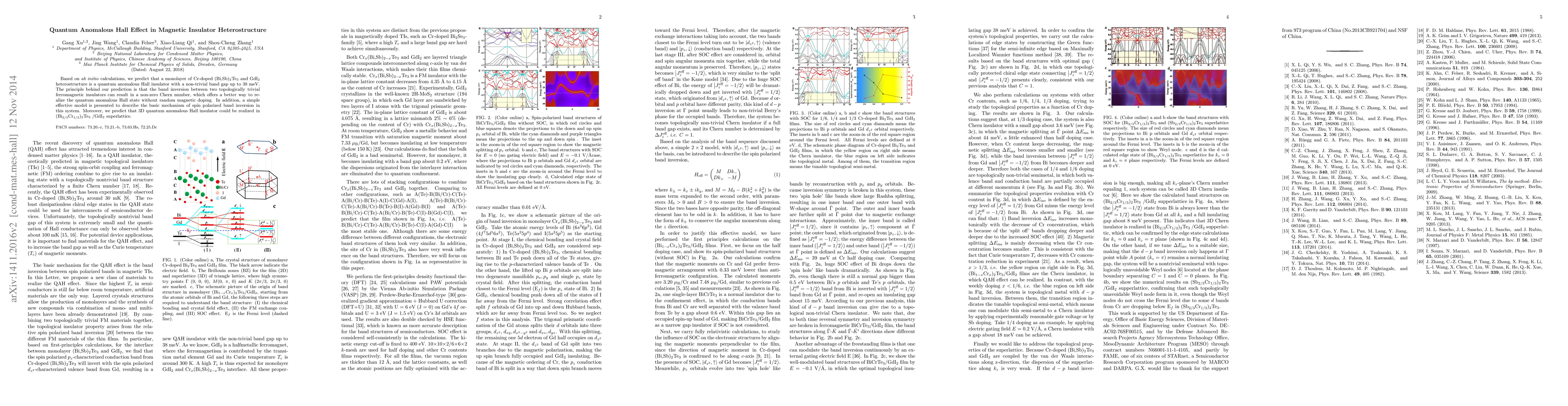 This research predicts a monolayer of Cr-doped (Bi,Sb)2Te3 and GdI2 heterostructure as a quantum anomalous Hall insulator with a 38 meV band gap, achieved through band inversion between two ferromagnetic insulators without random doping. An effective model describes the spin-polarized band inversion mechanism.