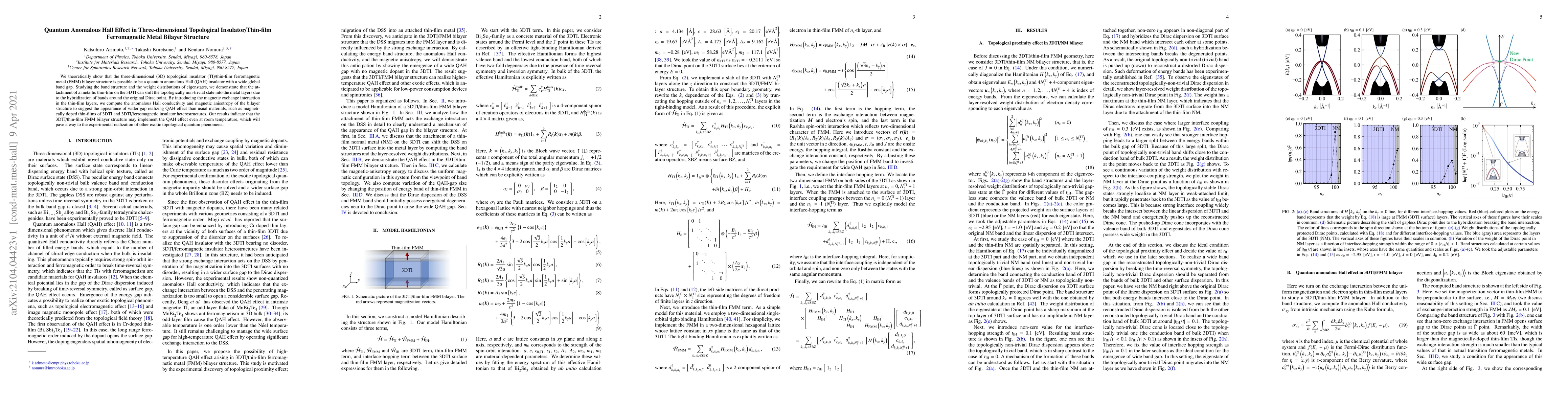 This paper theoretically demonstrates that a three-dimensional topological insulator/thin-film ferromagnetic metal bilayer structure can exhibit a quantum anomalous Hall effect with a wide band gap. The study shows that magnetic exchange interaction in the thin film induces the anomalous Hall conductivity, suggesting potential room-temperature implementation of the quantum anomalous Hall effect.