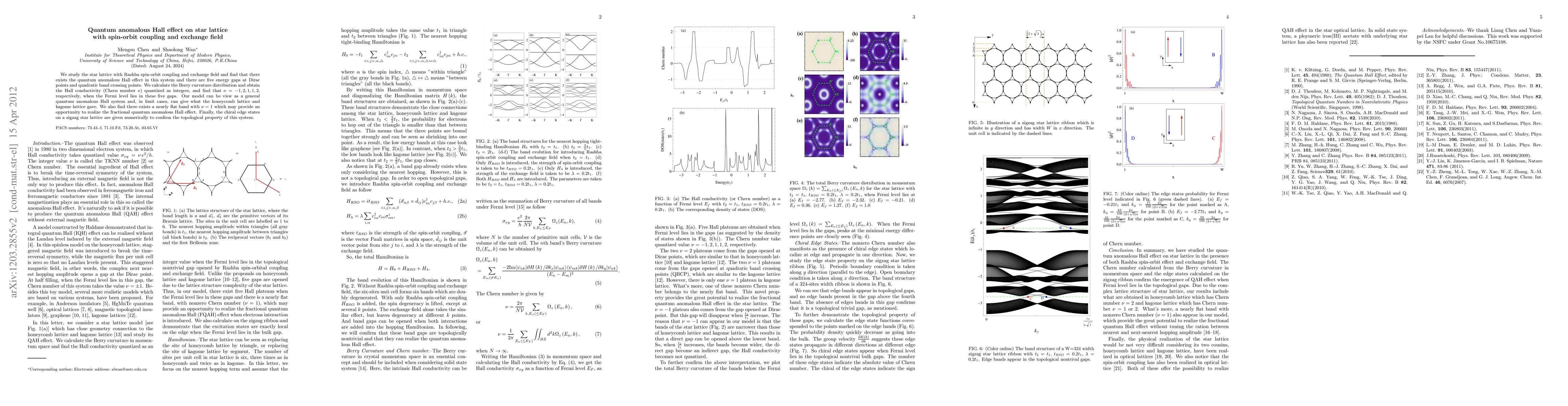 This paper investigates the quantum anomalous Hall effect in a star lattice with spin-orbit coupling and an exchange field, revealing five energy gaps and quantized Hall conductivities (Chern numbers) of $\nu=-1,2,1,1,2$. A nearly flat band with $\nu=1$ suggests potential for fractional quantum anomalous Hall effect realization, and numerical results confirm the topological nature of chiral edge states.