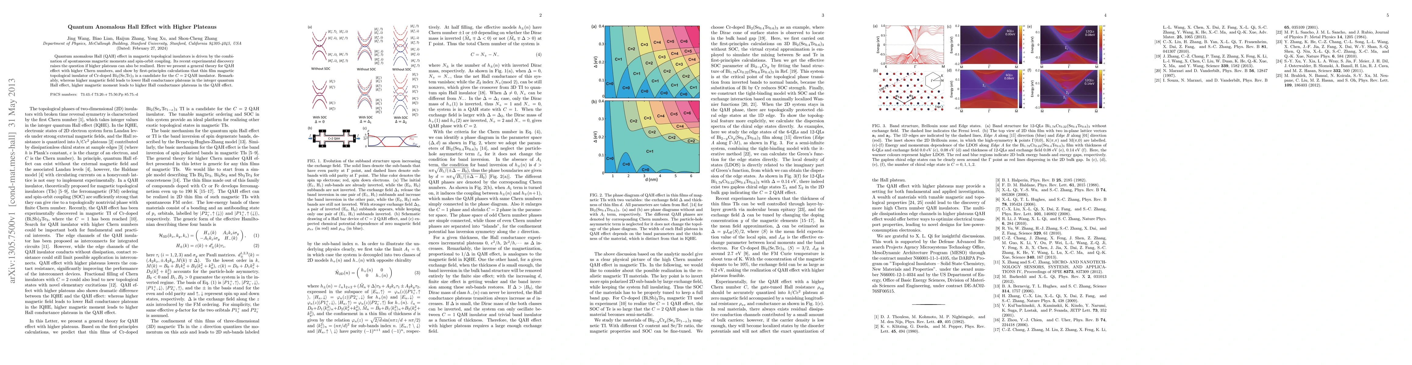 Summary: This paper develops a theoretical framework for the quantum anomalous Hall effect (QAH) with higher Chern numbers and identifies Cr-doped Bi$_2$(Se,Te)$_3$ as a candidate for a C=2 QAH insulator, demonstrating that higher magnetic moments result in increased Hall conductance plateaus, contrasting the integer quantum Hall effect.