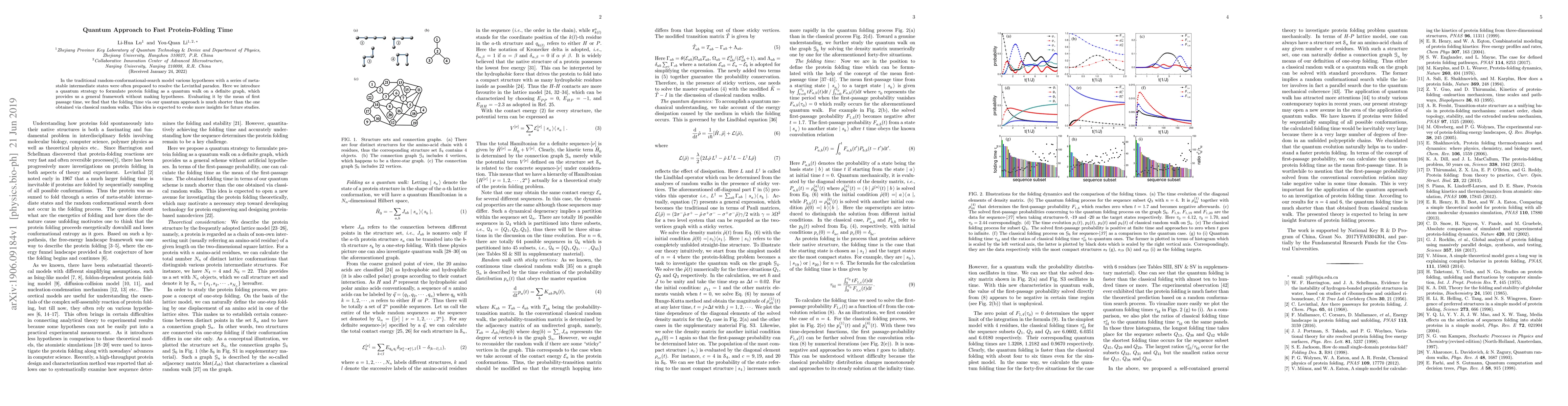 Researchers propose a quantum approach to protein folding that significantly reduces folding time compared to traditional methods, using a quantum walk on a graph as a general framework.