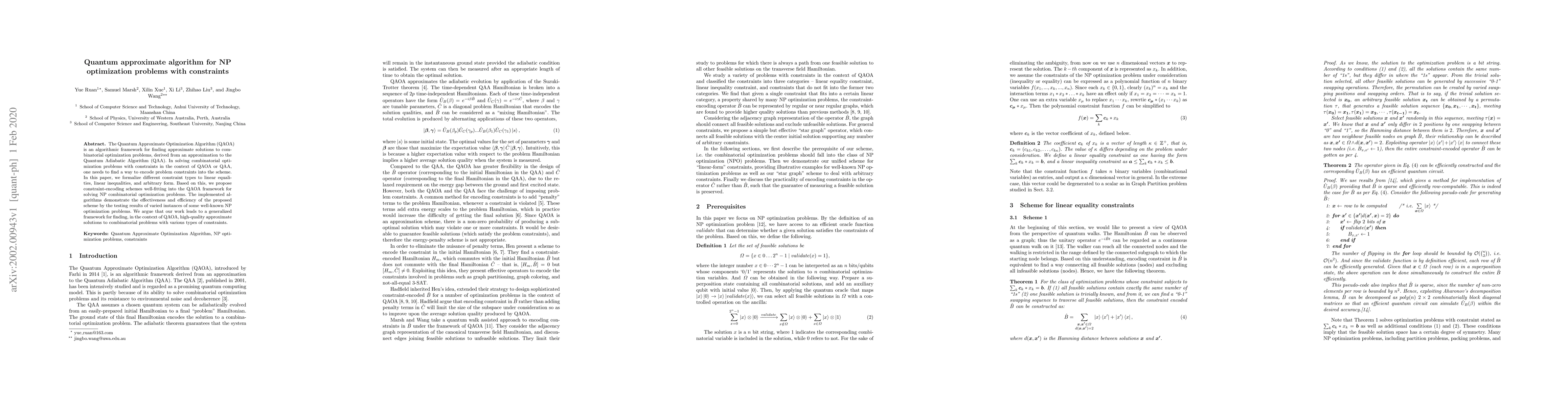 This paper proposes constraint-encoding schemes for the Quantum Approximate Optimization Algorithm (QAOA) to handle NP optimization problems with linear and arbitrary constraints. The effectiveness of these schemes is demonstrated through the solution of various NP optimization problems, suggesting a generalized framework for solving such problems.
