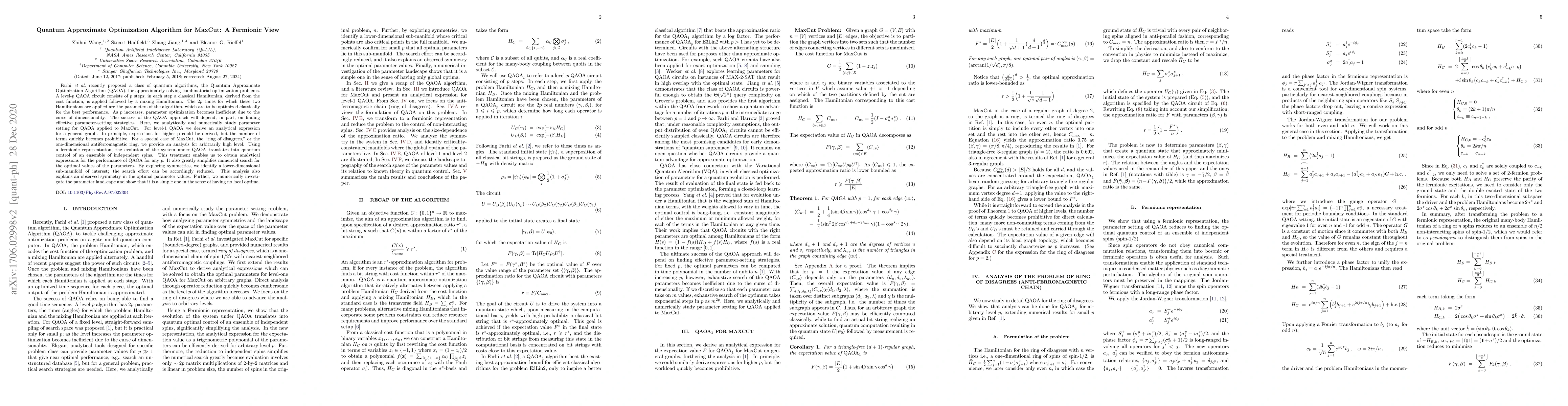 This paper studies the Quantum Approximate Optimization Algorithm (QAOA) for solving the MaxCut problem using a fermionic representation. It provides analytical expressions for parameter optimization and simplifies numerical searches, revealing a lower-dimensional sub-manifold for optimal parameter values and demonstrating the absence of local optima in the parameter landscape.