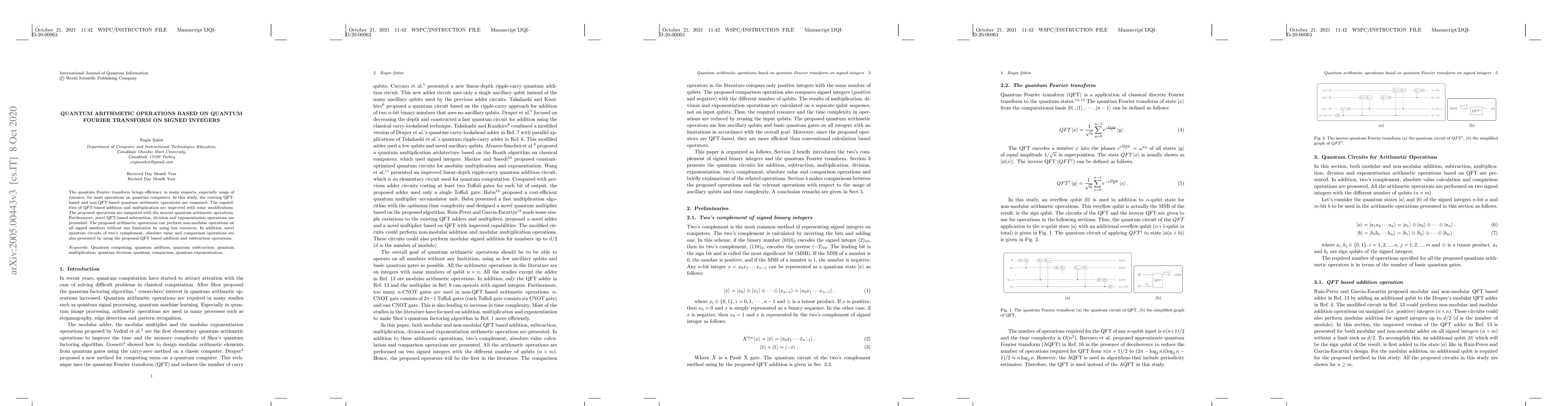This paper proposes enhanced quantum arithmetic operations using the Quantum Fourier Transform (QFT) for signed integers, improving efficiency and resource usage. It introduces novel QFT-based methods for addition, subtraction, multiplication, division, and exponentiation, along with quantum circuits for two's complement, absolute value, and comparison operations.