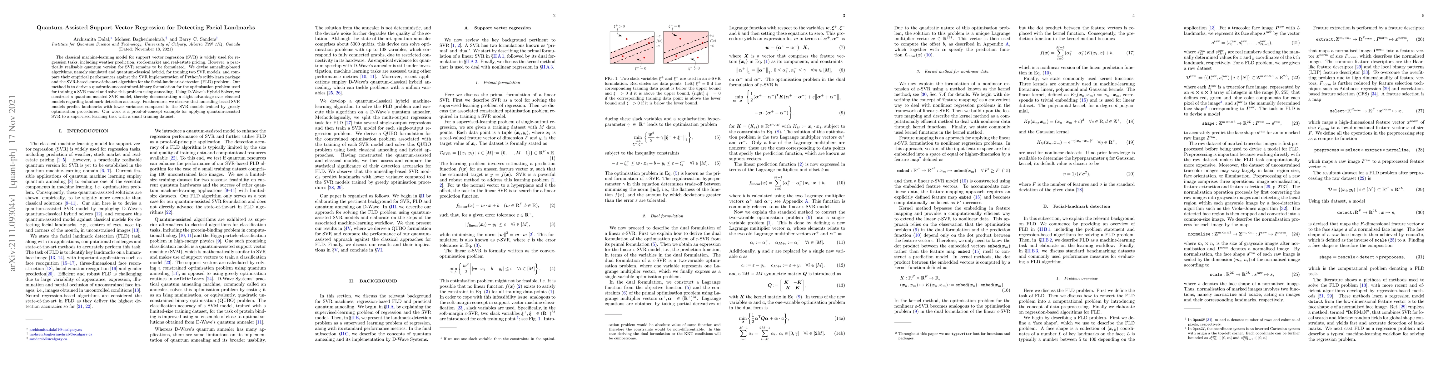 This paper proposes quantum-assisted support vector regression (SVR) models for detecting facial landmarks, utilizing annealing-based algorithms. The study demonstrates a slight improvement in accuracy and lower variance in predictions compared to classical SVR models, showcasing the potential of quantum computing in supervised learning tasks.