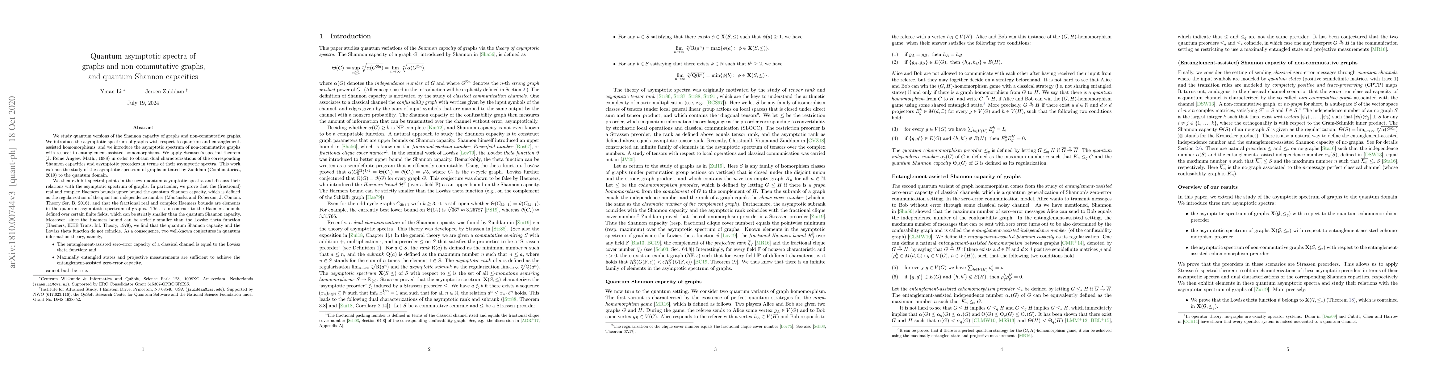 This paper explores quantum versions of Shannon capacities for graphs and non-commutative graphs, introducing the asymptotic spectrum of these structures. It applies Strassen's spectral theorem to characterize these capacities and shows that the quantum Shannon capacity is bounded by the fractional real and complex Haemers bounds, which are elements of the quantum asymptotic spectrum.