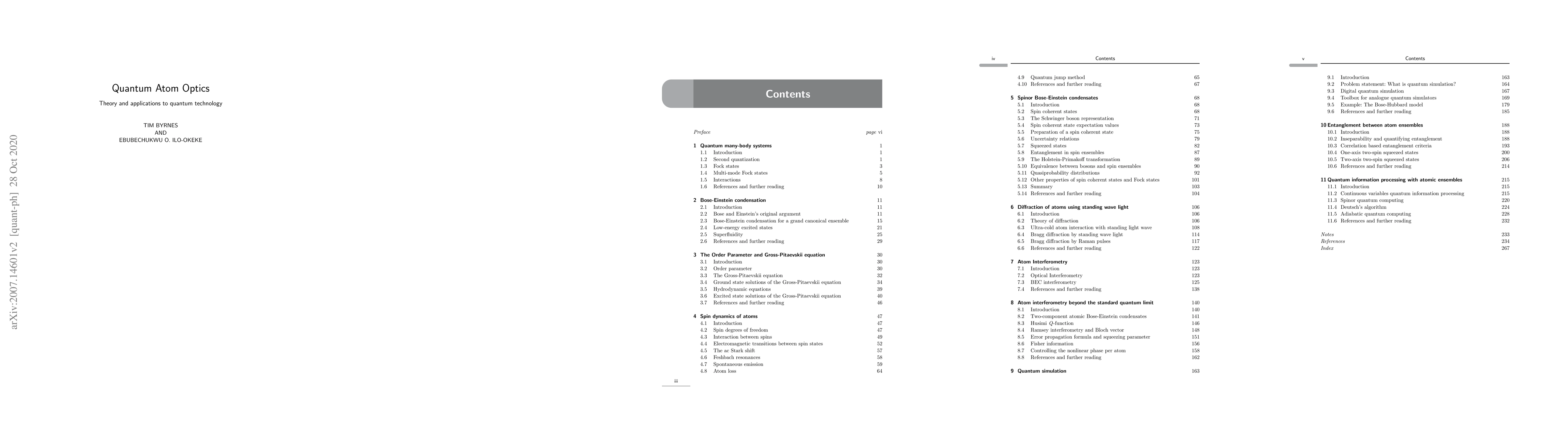 This book provides a comprehensive overview of quantum atom optics, focusing on the principles of neutral atom systems and their applications in quantum technology. It covers topics such as Bose-Einstein condensation, quantum simulation, and atomic interferometry, suitable for advanced undergraduates and graduate students in physics.