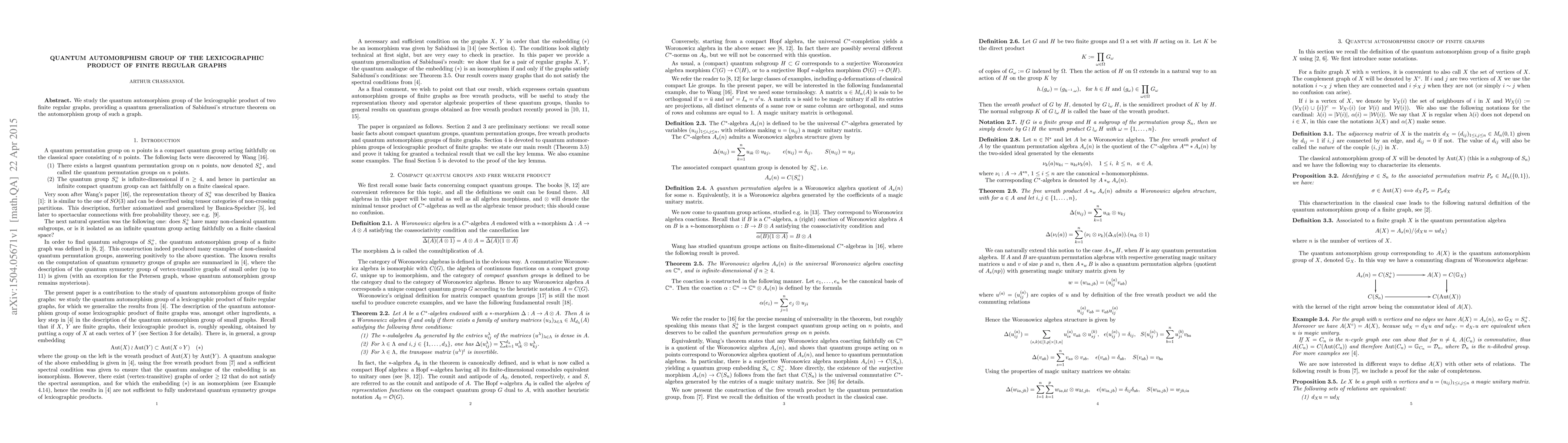 This paper explores the quantum automorphism group of the lexicographic product of two finite regular graphs, offering a quantum extension of Sabidussi's classical theorem on the structure of their automorphism groups.