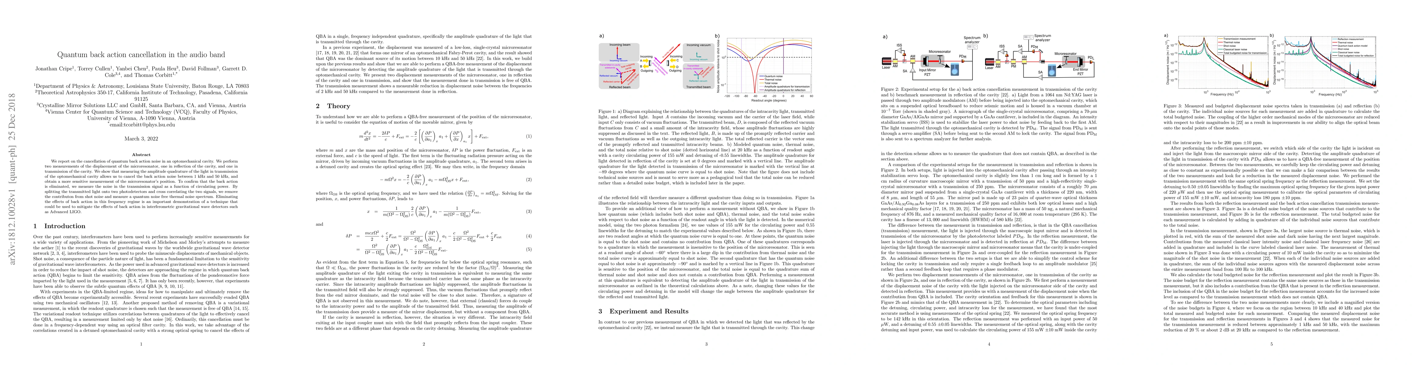 Researchers successfully canceled quantum back action noise in an optomechanical cavity using a technique that can be applied to mitigate back action effects in gravitational wave detectors.