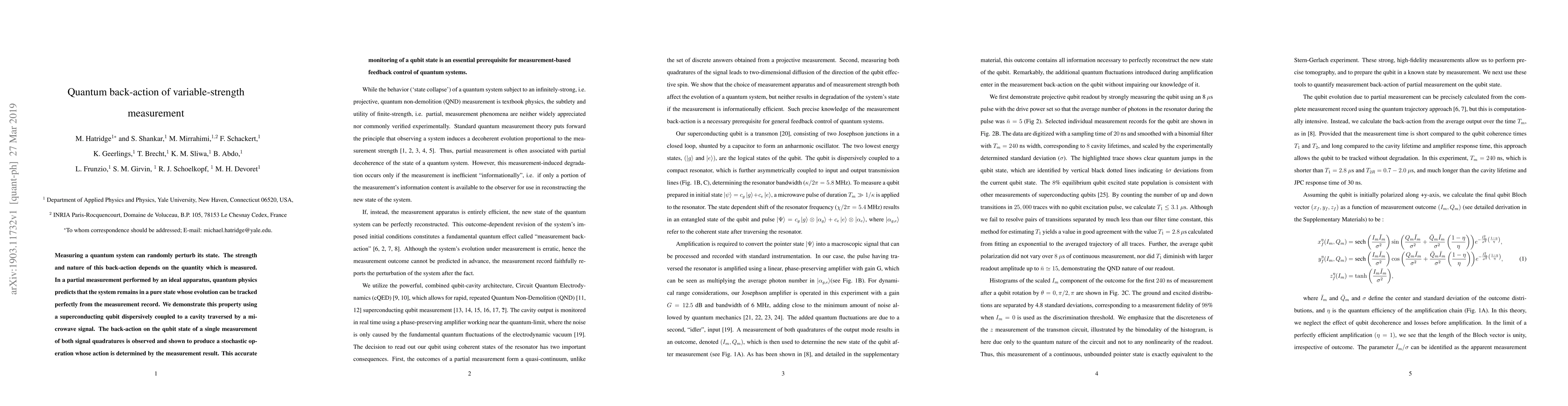 This paper investigates the quantum back-action resulting from variable-strength measurements on a superconducting qubit, demonstrating that the measurement process can stochastically perturb the qubit state. The study uses a dispersively coupled qubit-cavity system to observe the effects of measuring both signal quadratures, highlighting the importance of precise monitoring for quantum feedback control.