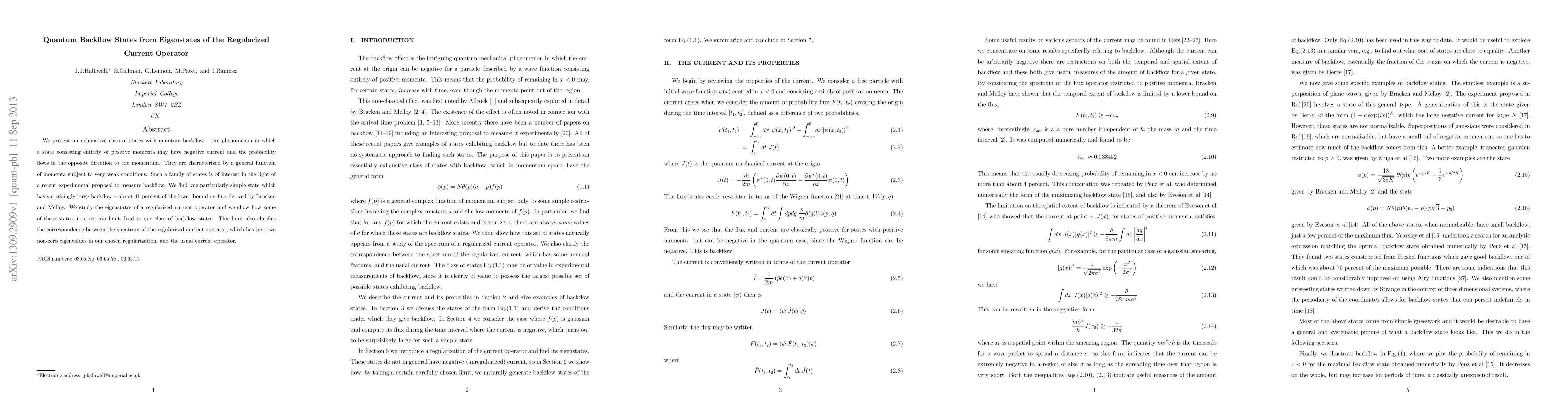 This paper explores quantum backflow states characterized by negative current despite positive momentum, revealing a class of states defined by a general function of momenta. A particularly notable state exhibits a large backflow, about 41 percent of the theoretical lower bound, and the study connects these states to the eigenstates of a regularized current operator.