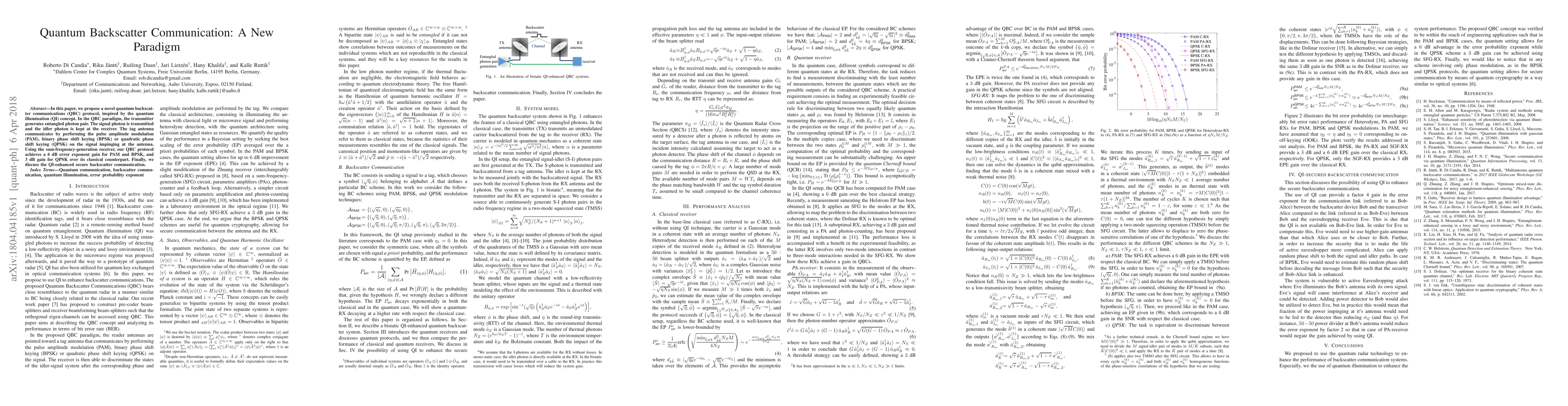 In this paper, we propose a novel quantum backscatter communications (QBC) protocol, inspired by the quantum illumination (QI) concept. In the QBC paradigm, the transmitter generates entangled photon pair. The signal photon is transmitted and the idler photon is kept at the receiver. The tag antenna communicates by performing the pulse amplitude modulation (PAM), binary phase shift keying (BPSK) or quadratic phase shift keying (QPSK) on the signal impinging at the antenna. Using the sum-frequency-generation receiver, our QBC protocol achieves a 6 dB error exponent gain for PAM and BPSK, and 3 dB gain for QPSK over its classical counterpart. Finally, we discuss the QI-enhanced secure backscatter communication.