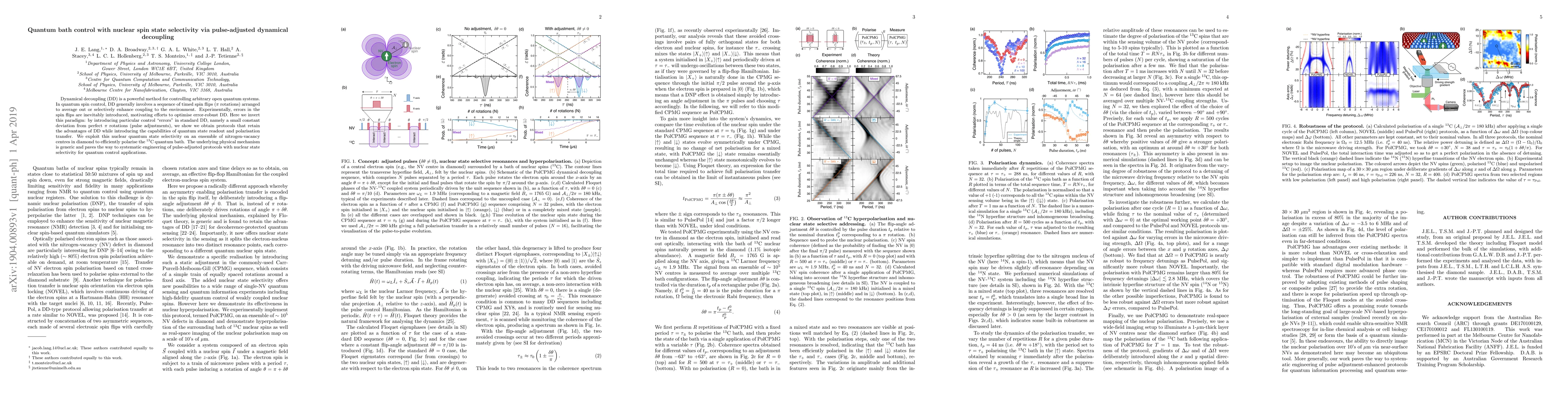 Dynamical decoupling (DD) is a powerful method for controlling arbitrary open quantum systems. In quantum spin control, DD generally involves a sequence of timed spin flips ($\pi$ rotations) arranged to average out or selectively enhance coupling to the environment. Experimentally, errors in the spin flips are inevitably introduced, motivating efforts to optimise error-robust DD. Here we invert this paradigm: by introducing particular control "errors" in standard DD, namely a small constant deviation from perfect $\pi$ rotations (pulse adjustments), we show we obtain protocols that retain the advantages of DD while introducing the capabilities of quantum state readout and polarisation transfer. We exploit this nuclear quantum state selectivity on an ensemble of nitrogen-vacancy centres in diamond to efficiently polarise the $^{13}$C quantum bath. The underlying physical mechanism is generic and paves the way to systematic engineering of pulse-adjusted protocols with nuclear state selectivity for quantum control applications.