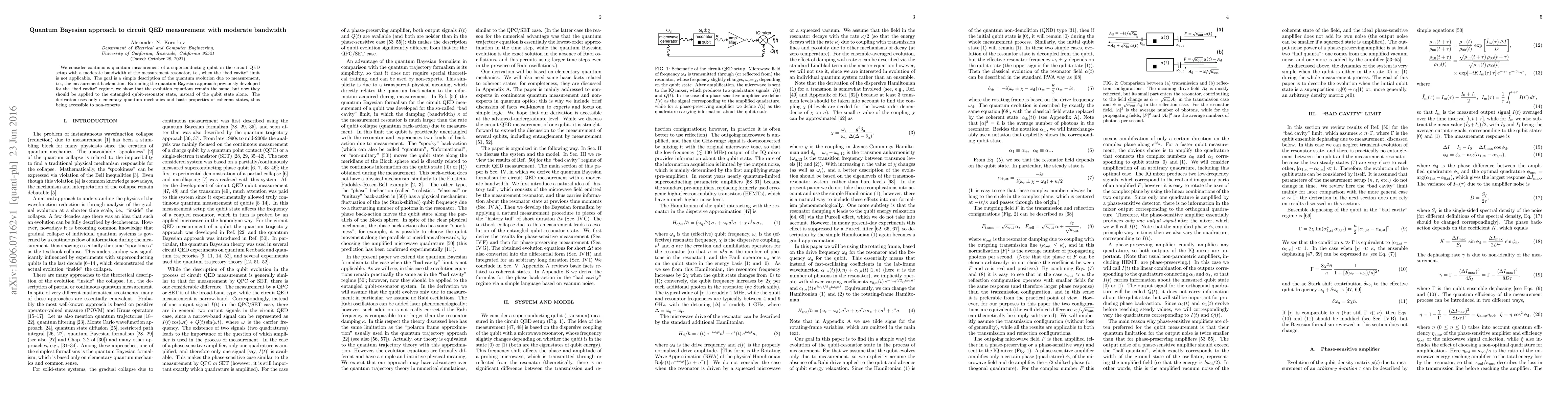 This paper extends the quantum Bayesian approach to describe the quantum evolution of a superconducting qubit in a circuit QED setup with a moderate bandwidth measurement resonator. The evolution equations remain the same but now apply to the entangled qubit-resonator state, providing a simple description of measurement back-action accessible to non-experts.