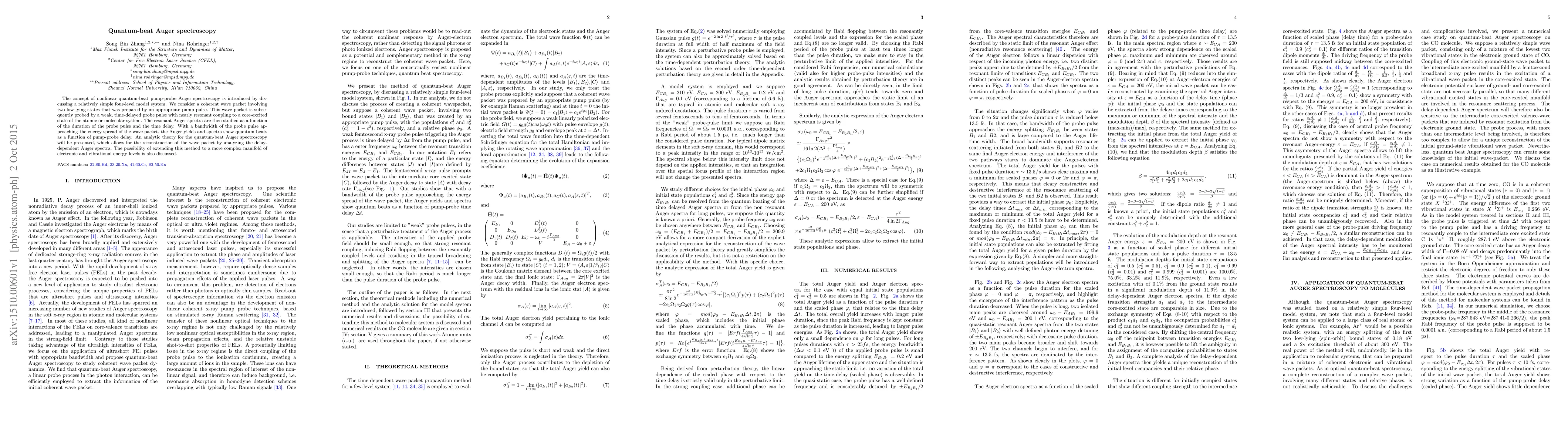This paper introduces a nonlinear quantum-beat pump-probe Auger spectroscopy method using a four-level model system. It analyzes coherent wave packets created by pump pulses and probed with time-delayed pulses to observe quantum beats in resonant Auger spectra, providing a theoretical framework for reconstructing wave packets.