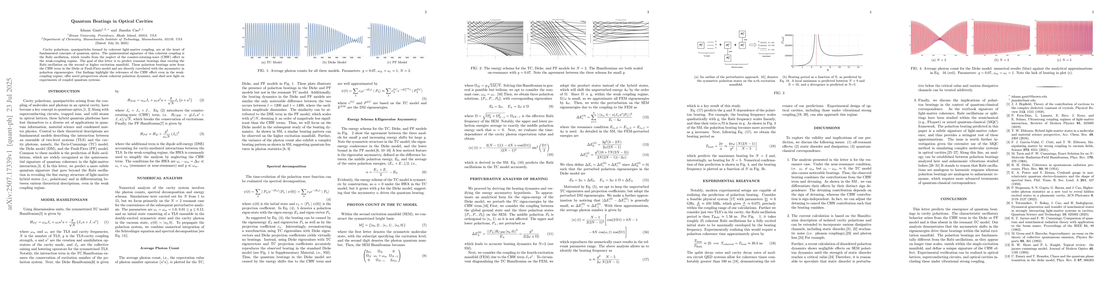 Cavity polaritons, quasiparticles formed by coherent light-matter coupling, are at the heart of fundamental concepts of quantum optics. The quintessential signature of this coherent coupling is the Rabi oscillation, which results from the neglect of the counter-rotating-wave (CRW) effect in the weak-coupling regime. The goal of this letter is to predict resonant beatings that envelop the Rabi oscillation on the second or higher excitation manifold. These polariton beatings arise from the CRW term in the Dicke or Pauli-Fierz model and are directly correlated with the asymmetry in polariton eigenenergies. Our findings highlight the relevance of the CRW effect even in the weak-coupling regime, offer novel perspectives about coherent polariton dynamics, and shed new light on experiments of coupled quantum systems.