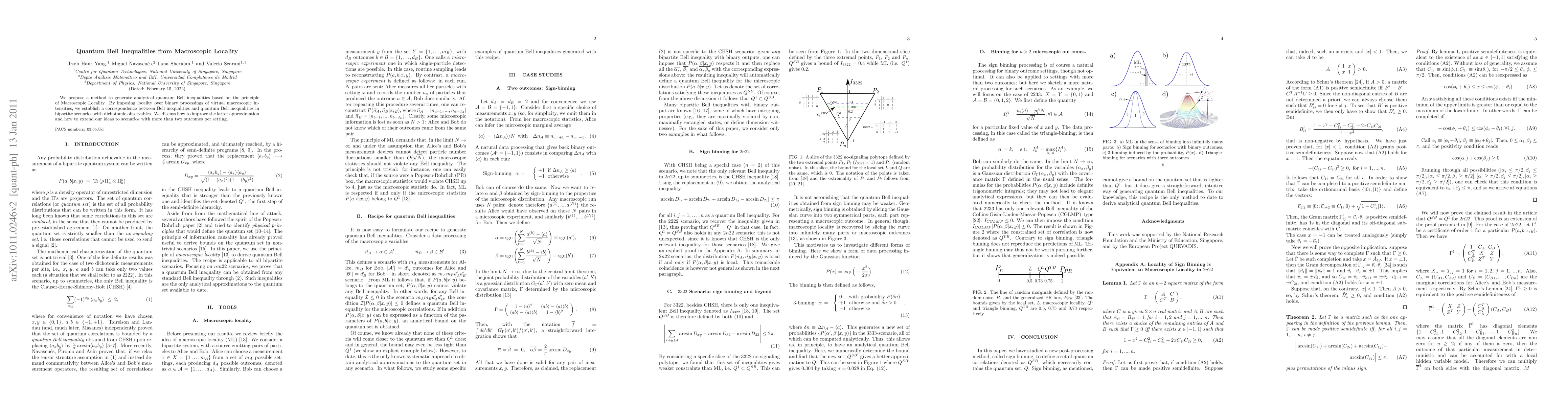This paper proposes a method to derive analytical quantum Bell inequalities using the principle of Macroscopic Locality, establishing a link between Bell inequalities and quantum Bell inequalities in bipartite scenarios with dichotomic observables. The authors also discuss potential improvements and extensions to scenarios with more outcomes per setting.