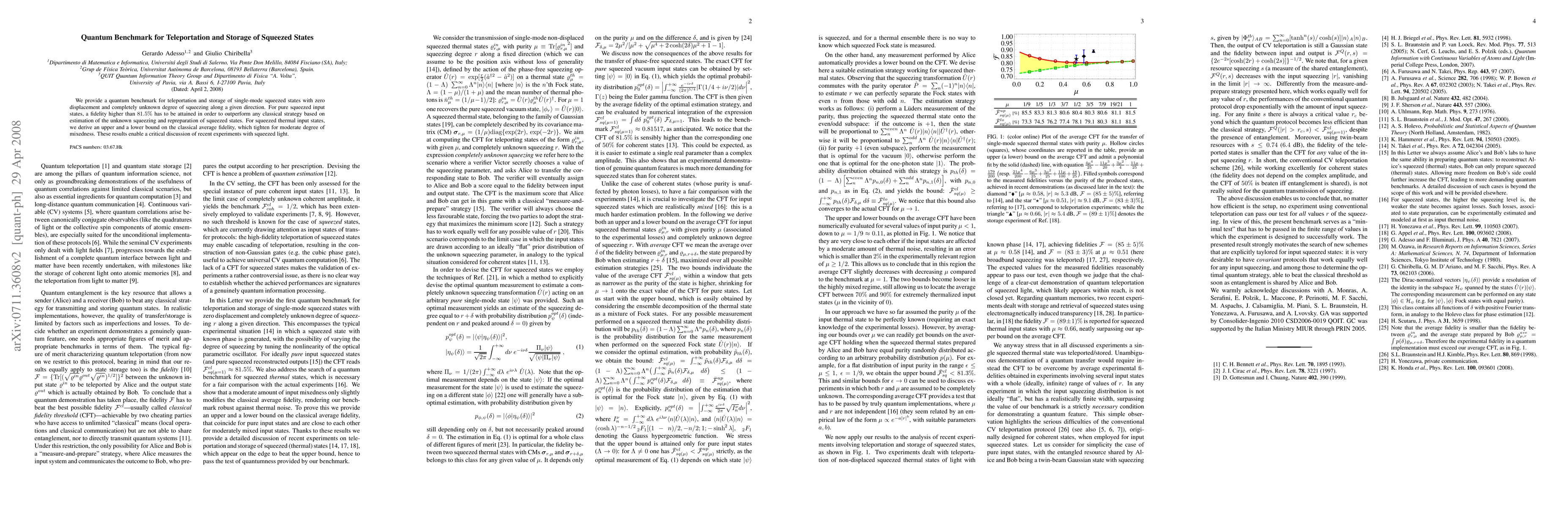 This paper establishes a quantum benchmark for teleporting and storing squeezed quantum states, showing that a fidelity above 81.5% is necessary to outperform classical methods for pure squeezed states. For mixed squeezed states, it provides bounds on classical fidelity, aiding in the evaluation of recent experimental results.