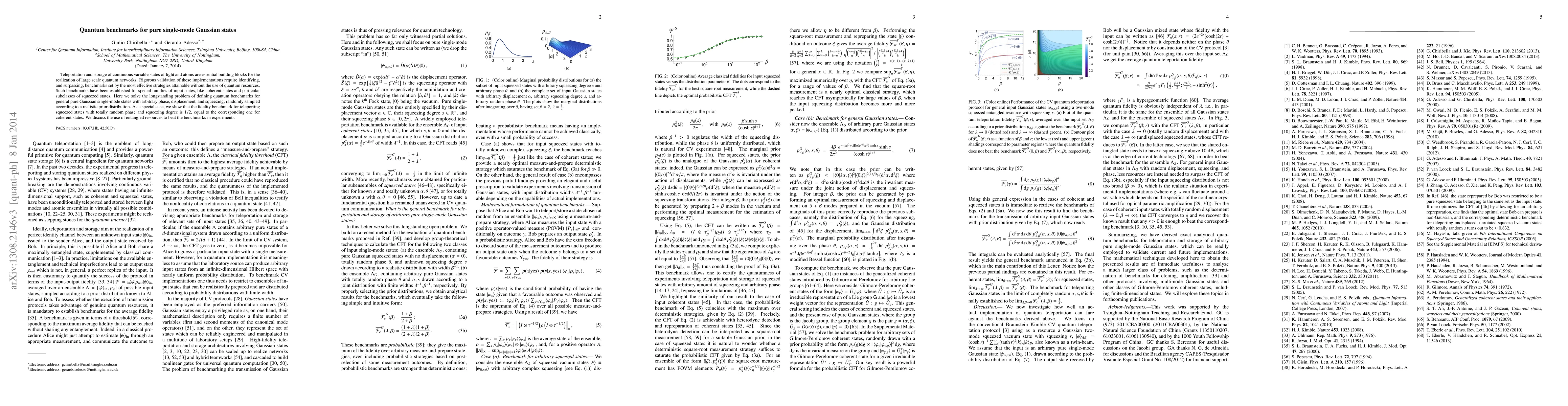 This paper establishes quantum benchmarks for teleporting and storing general pure Gaussian single-mode states, revealing that the fidelity benchmark for teleporting squeezed states is 1/2, the same as for coherent states. It also explores the potential of using entangled resources to surpass these benchmarks in practical quantum network implementations.