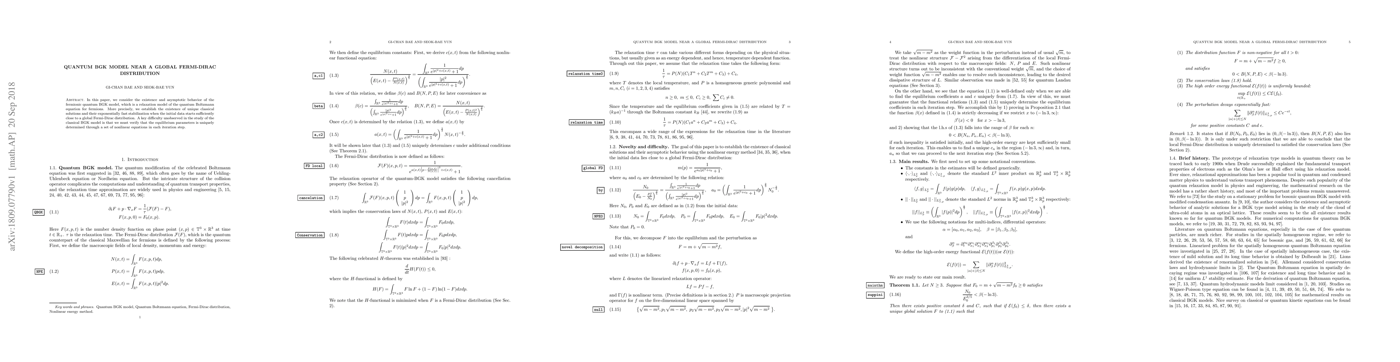 This paper establishes the existence and asymptotic behavior of the fermionic quantum BGK model, proving unique classical solutions that rapidly stabilize when initial data is near a global Fermi-Dirac distribution, addressing the challenge of determining equilibrium parameters through nonlinear equations.