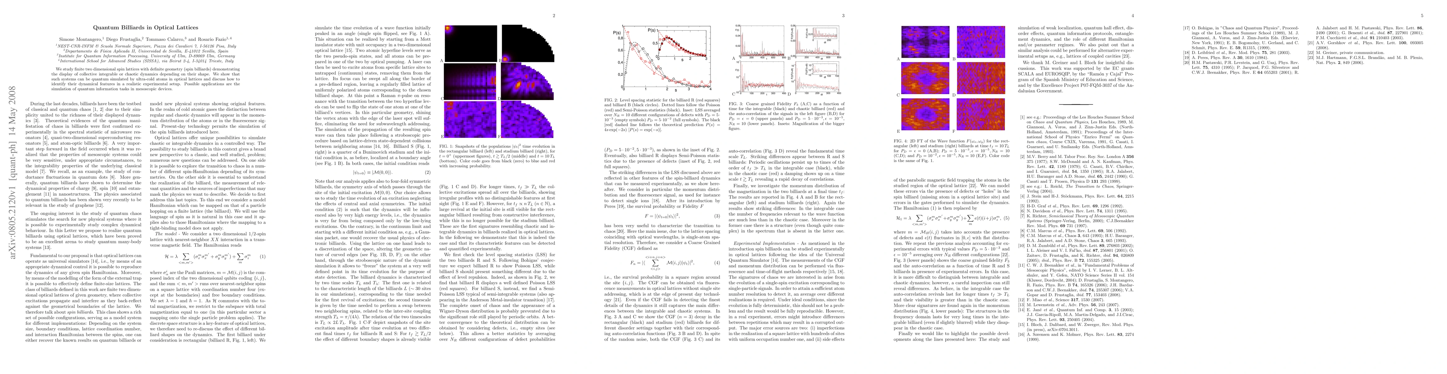 This paper explores two-dimensional spin lattices (quantum billiards) exhibiting either collective integrable or chaotic dynamics based on their geometry. It demonstrates that these systems can be simulated using ultra-cold atoms in optical lattices, with potential applications in simulating quantum information tasks in mesoscopic devices.