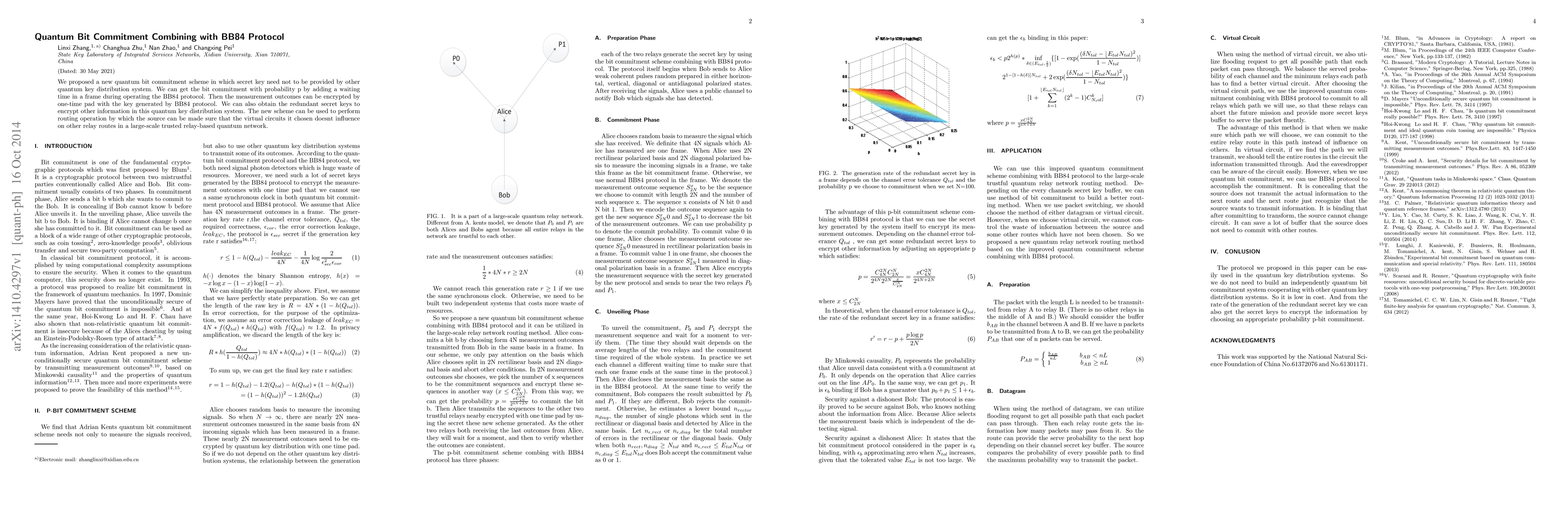 This paper introduces a novel quantum bit commitment scheme that integrates with the BB84 protocol, allowing bit commitment to be achieved with probability p by incorporating a waiting time during BB84 operations. The measurement outcomes are encrypted using a one-time pad with keys generated by the BB84 protocol, providing additional redundant secret keys for further encryption.