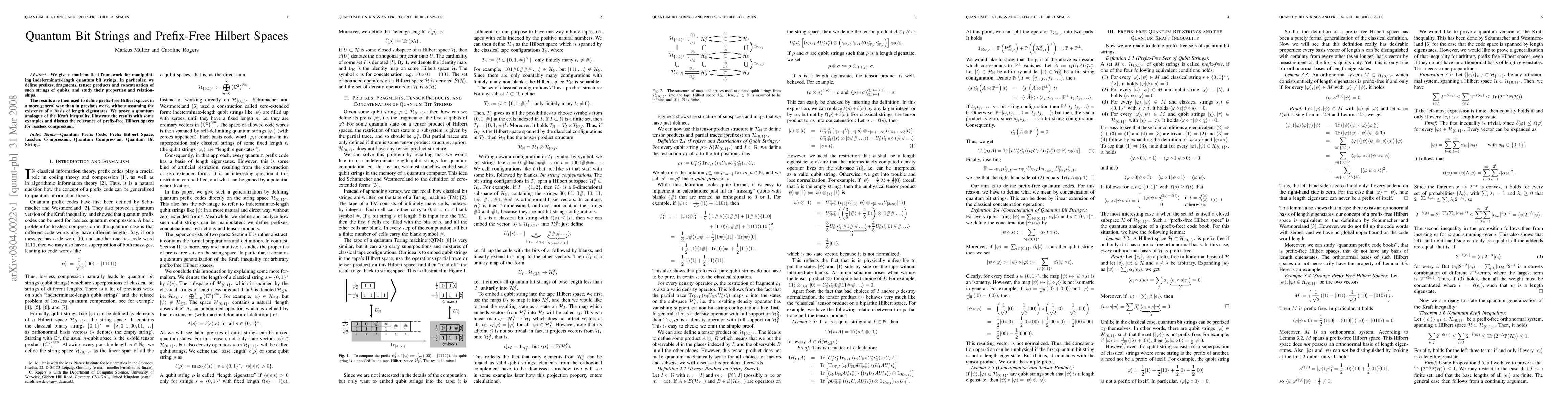 This paper presents a mathematical framework for handling indeterminate-length quantum bit strings, defining their prefixes, fragments, and operations like tensor products and concatenation. It introduces a new definition of prefix-free Hilbert spaces and proves a quantum analogue of the Kraft inequality, highlighting its implications for lossless compression.