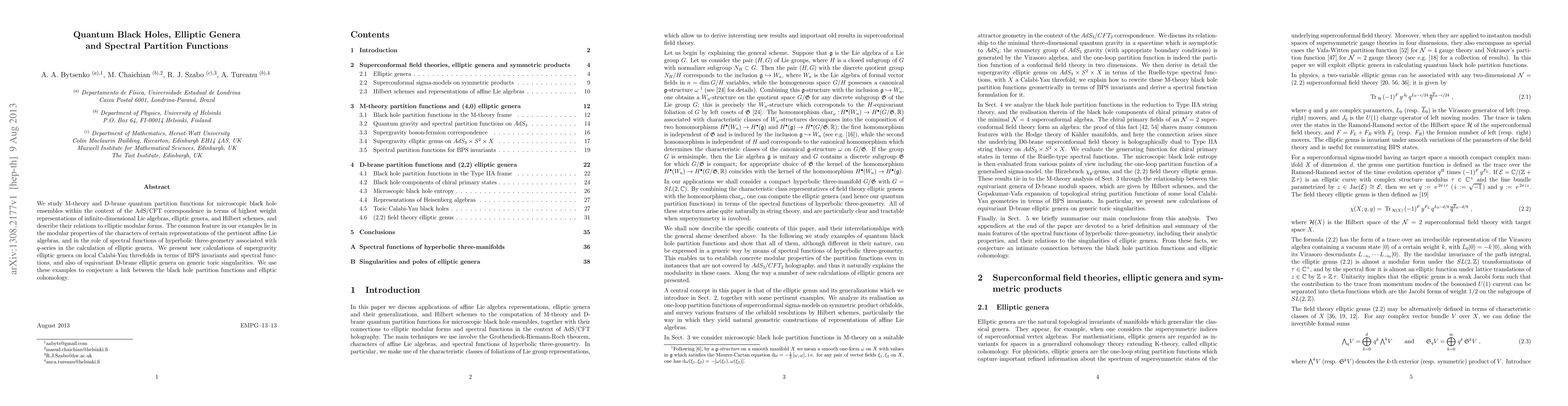 We study M-theory and D-brane quantum partition functions for microscopic black hole ensembles within the context of the AdS/CFT correspondence in terms of highest weight representations of infinite-dimensional Lie algebras, elliptic genera, and Hilbert schemes, and describe their relations to elliptic modular forms. The common feature in our examples lie in the modular properties of the characters of certain representations of the pertinent affine Lie algebras, and in the role of spectral functions of hyperbolic three-geometry associated with q-series in the calculation of elliptic genera. We present new calculations of supergravity elliptic genera on local Calabi-Yau threefolds in terms of BPS invariants and spectral functions, and also of equivariant D-brane elliptic genera on generic toric singularities. We use these examples to conjecture a link between the black hole partition functions and elliptic cohomology.