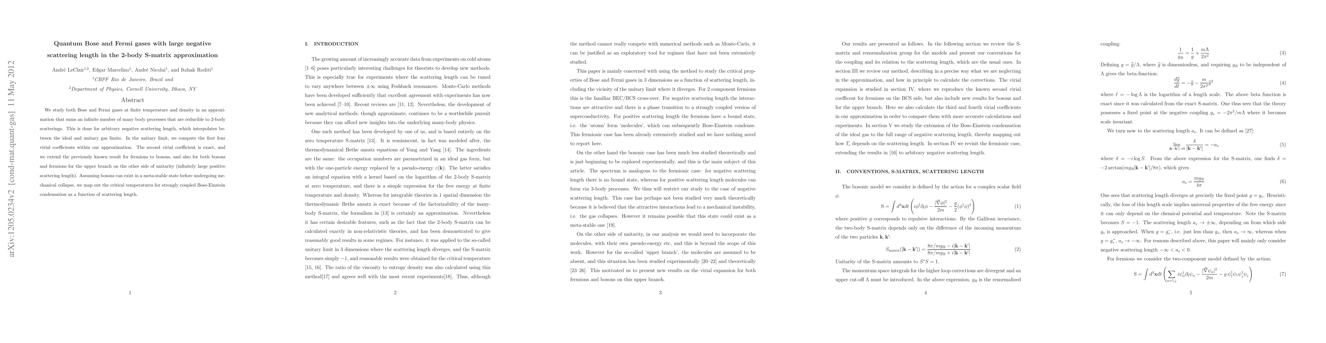 This paper explores Bose and Fermi gases at finite temperature and density using a 2-body S-matrix approximation for large negative scattering lengths, computing the first four virial coefficients in the unitary limit and extending known results to both bosons and fermions. It also investigates the critical temperatures for meta-stable Bose-Einstein condensation under strong coupling.