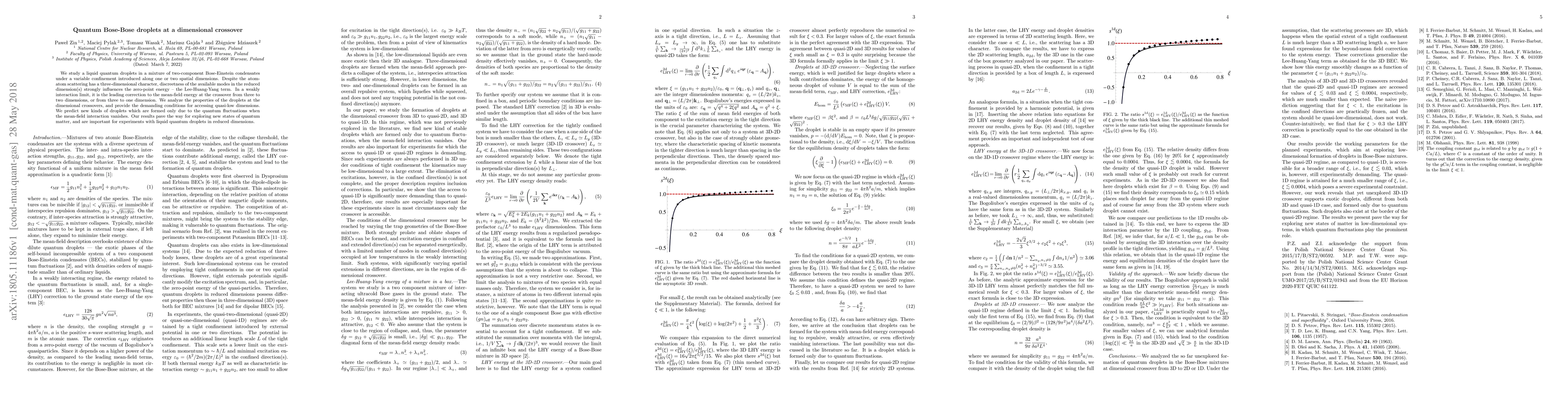 This paper investigates quantum droplets in two-component Bose-Einstein condensates under varying confinement dimensions, revealing how reduced dimensions influence zero-point energy. It predicts new droplet types formed by quantum fluctuations at dimensional crossovers, paving the way for exploring novel quantum matter states.