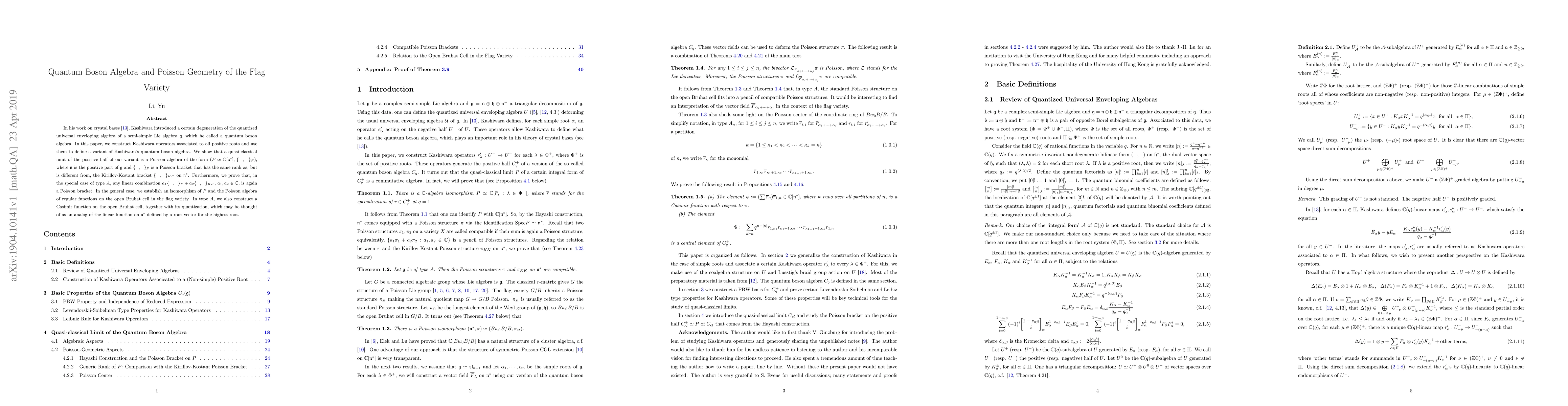 This paper constructs Kashiwara operators to define a variant of Kashiwara's quantum boson algebra, showing that its quasi-classical limit forms a Poisson algebra on the flag variety with a bracket differing from the Kirillov-Kostant bracket. It proves that a linear combination of this new bracket and the Kirillov-Kostant bracket remains a Poisson bracket in type $A$.
