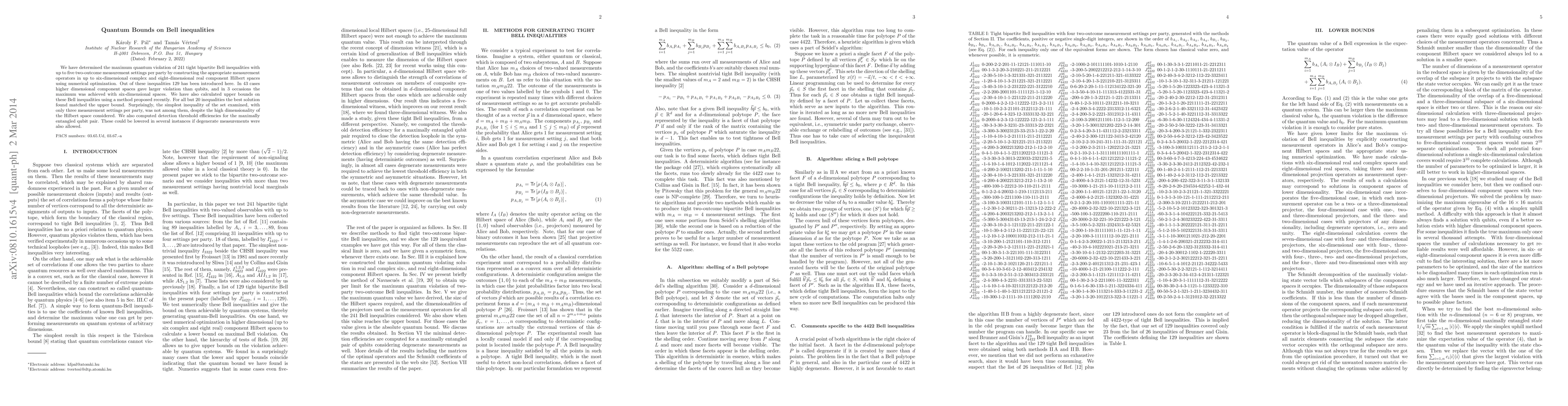This paper investigates the maximum quantum violation of 241 bipartite Bell inequalities, finding that higher dimensional Hilbert spaces can exceed qubit violations in some cases. The study also establishes upper bounds on these inequalities, with most matching the best found solution, though the simplest inequality did not achieve the highest violation despite high-dimensional considerations.