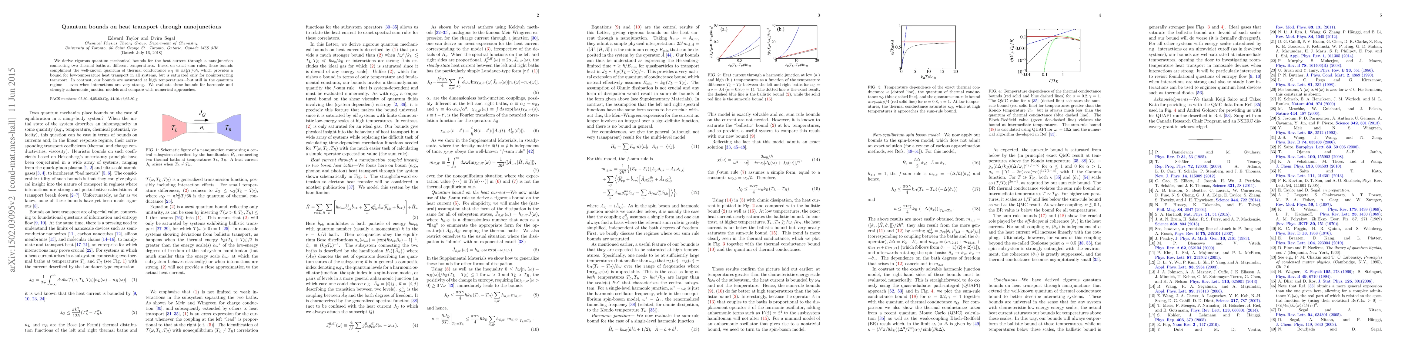 We derive rigorous quantum mechanical bounds for the heat current through a nanojunction connecting two thermal baths at different temperatures. Based on exact sum rules, these bounds compliment the well-known quantum of thermal conductance $\kappa_Q \equiv \pi k^2_B T/6\hbar$, which provides a bound for low-temperature heat transport in all systems, but is saturated only for noninteracting transport. In contrast, our bounds are saturated at high temperatures---but still in the quantum regime---, even when interactions are very strong. We evaluate these bounds for harmonic and strongly anharmonic junction models and compare with numerical approaches.