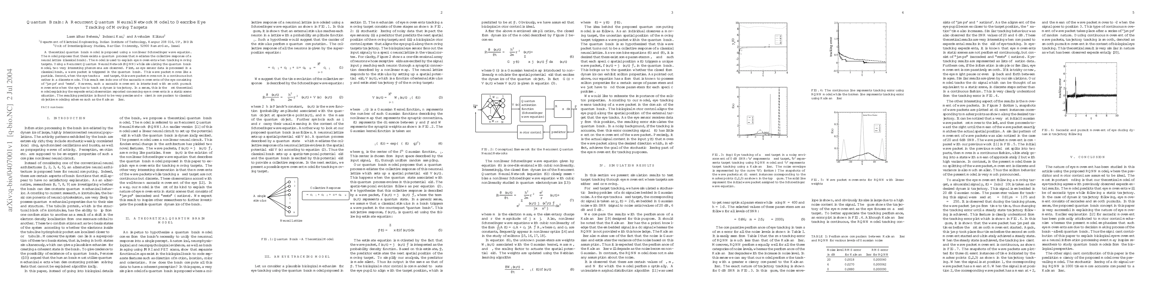 A theoretical quantum brain model is proposed using a nonlinear Schroedinger wave equation. The model proposes that there exists a quantum process that mediates the collective response of a neural lattice (classical brain). The model is used to explain eye movements when tracking moving targets. Using a Recurrent Quantum Neural Network(RQNN) while simulating the quantum brain model, two very interesting phenomena are observed. First, as eye sensor data is processed in a classical brain, a wave packet is triggered in the quantum brain. This wave packet moves like a particle. Second, when the eye tracks a fixed target, this wave packet moves not in a continuous but rather in a discrete mode. This result reminds one of the saccadic movements of the eye consisting of 'jumps' and 'rests'. However, such a saccadic movement is intertwined with smooth pursuit movements when the eye has to track a dynamic trajectory. In a sense, this is the first theoretical model explaining the experimental observation reported concerning eye movements in a static scene situation. The resulting prediction is found to be very precise and efficient in comparison to classical objective modeling schemes such as the Kalman filter.