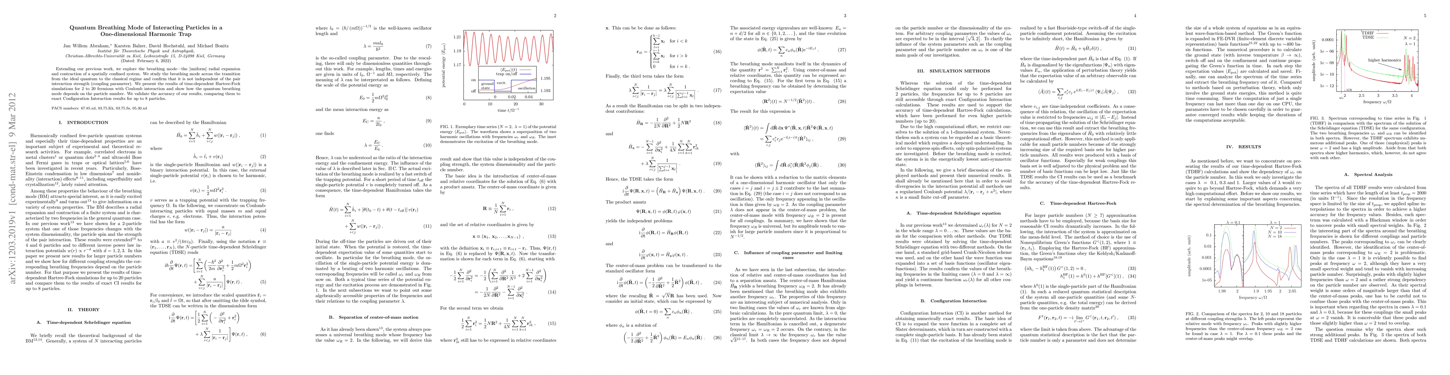 This paper investigates the quantum breathing mode in a one-dimensional harmonic trap, demonstrating how the uniform radial expansion and contraction of a confined system varies with particle number and interaction strength. The study confirms the dependence of the breathing mode on coupling parameters and validates simulation results against exact Configuration Interaction calculations for small systems.