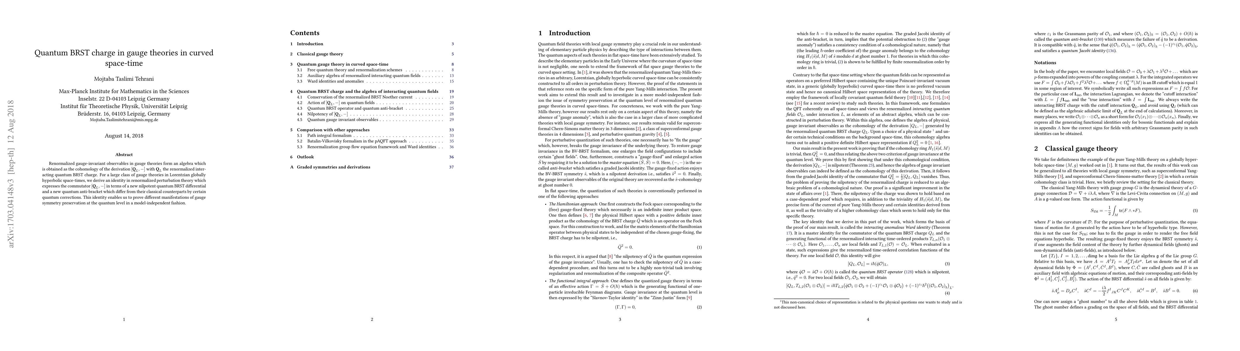 This paper derives an identity in renormalized perturbation theory for gauge theories in curved space-time, expressing the commutator of the quantum BRST charge in terms of a new nilpotent quantum BRST differential and a quantum anti-bracket, thus proving gauge symmetry preservation at the quantum level in a model-independent way.