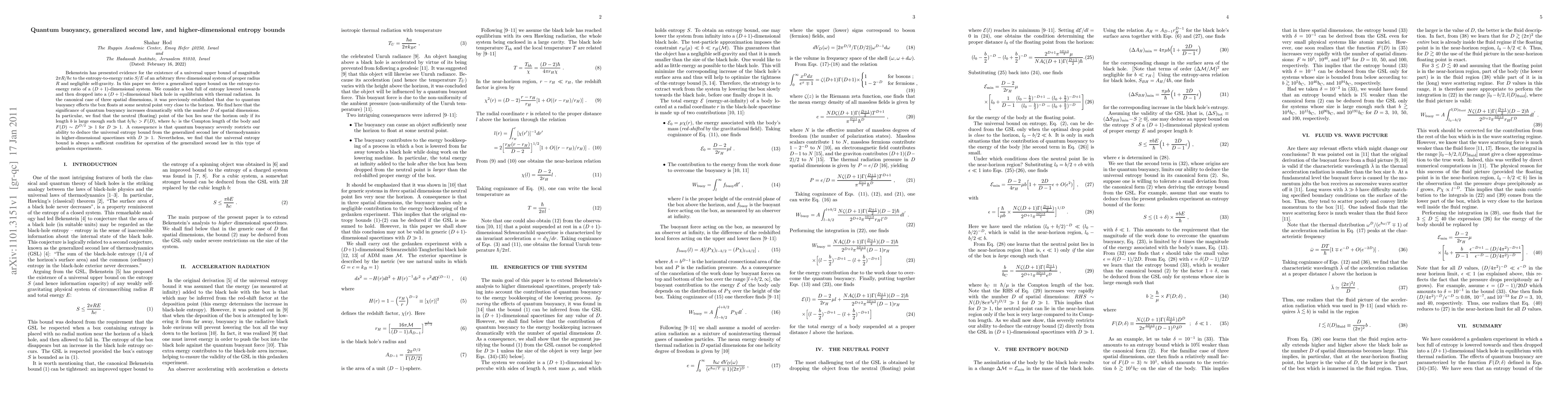 Bekenstein has presented evidence for the existence of a universal upper bound of magnitude $2\pi R/\hbar c$ to the entropy-to-energy ratio $S/E$ of an arbitrary {\it three} dimensional system of proper radius $R$ and negligible self-gravity. In this paper we derive a generalized upper bound on the entropy-to-energy ratio of a $(D+1)$-dimensional system. We consider a box full of entropy lowered towards and then dropped into a $(D+1)$-dimensional black hole in equilibrium with thermal radiation. In the canonical case of three spatial dimensions, it was previously established that due to quantum buoyancy effects the box floats at some neutral point very close to the horizon. We find here that the significance of quantum buoyancy increases dramatically with the number $D$ of spatial dimensions. In particular, we find that the neutral (floating) point of the box lies near the horizon only if its length $b$ is large enough such that $b/b_C>F(D)$, where $b_C$ is the Compton length of the body and $F(D)\sim D^{D/2}\gg1$ for $D\gg1$. A consequence is that quantum buoyancy severely restricts our ability to deduce the universal entropy bound from the generalized second law of thermodynamics in higher-dimensional spacetimes with $D\gg1$. Nevertheless, we find that the universal entropy bound is always a sufficient condition for operation of the generalized second law in this type of gedanken experiments.