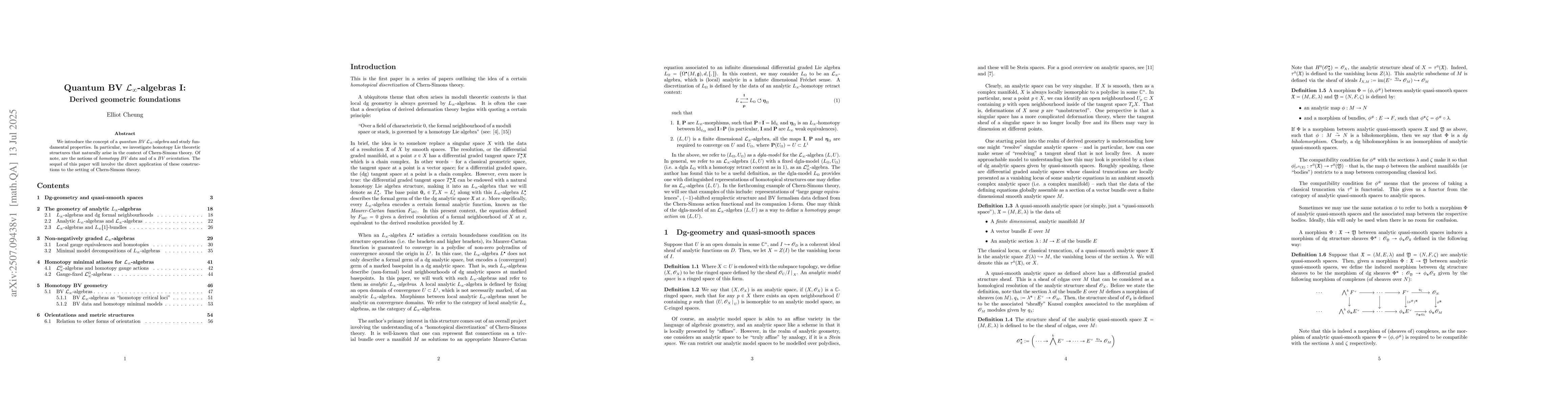 We introduce the concept of a quantum BV $\mathcal{L}_{\infty}$-algebra and study fundamental properties. In particular, we investigate homotopy Lie theoretic structures that naturally arise in the context of Chern-Simons theory. Of note, are the notions of homotopy BV data and of a BV orientation. The sequel of this paper will involve the direct application of these constructions to the setting of Chern-Simons theory.
