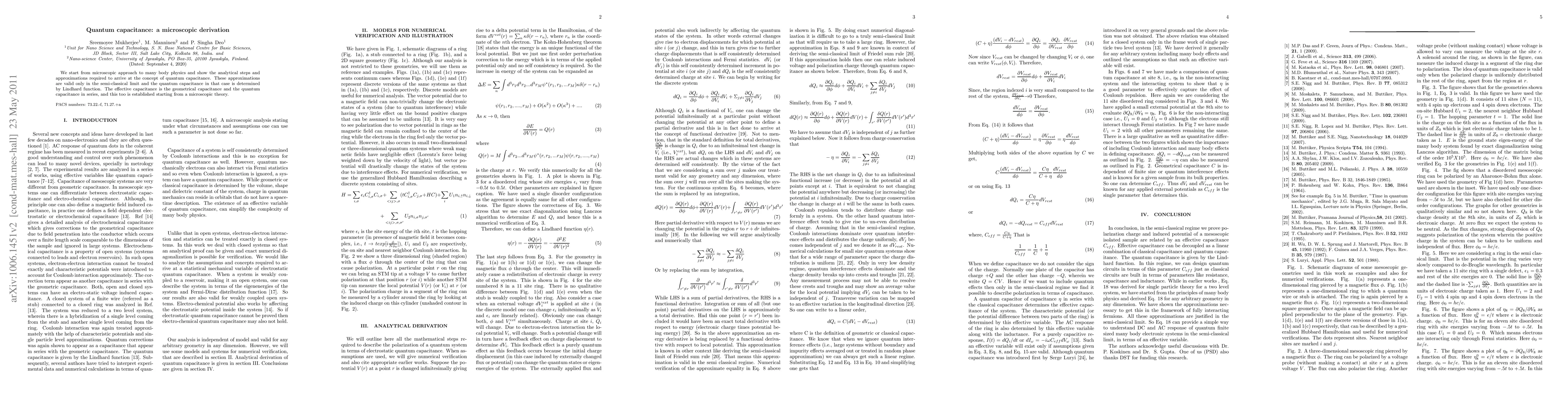 We start from microscopic approach to many body physics and show the analytical steps and approximations required to arrive at the concept of quantum capacitance. These approximations are valid only in the semi-classical limit and the quantum capacitance in that case is determined by Lindhard function. The effective capacitance is the geometrical capacitance and the quantum capacitance in series, and this too is established starting from a microscopic theory.