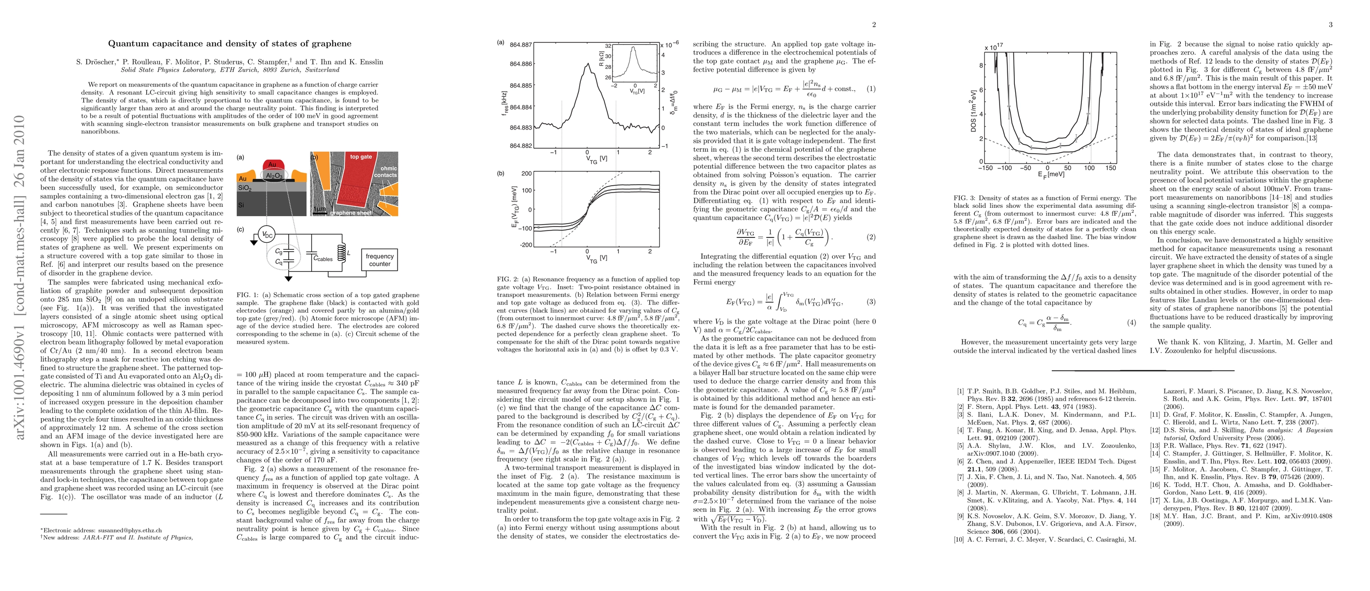 Summary: Measurements of graphene's quantum capacitance reveal a significant, non-zero density of states near the charge neutrality point, attributed to potential fluctuations of around 100 meV, validated by resonant LC-circuit techniques and corroborated by previous studies.