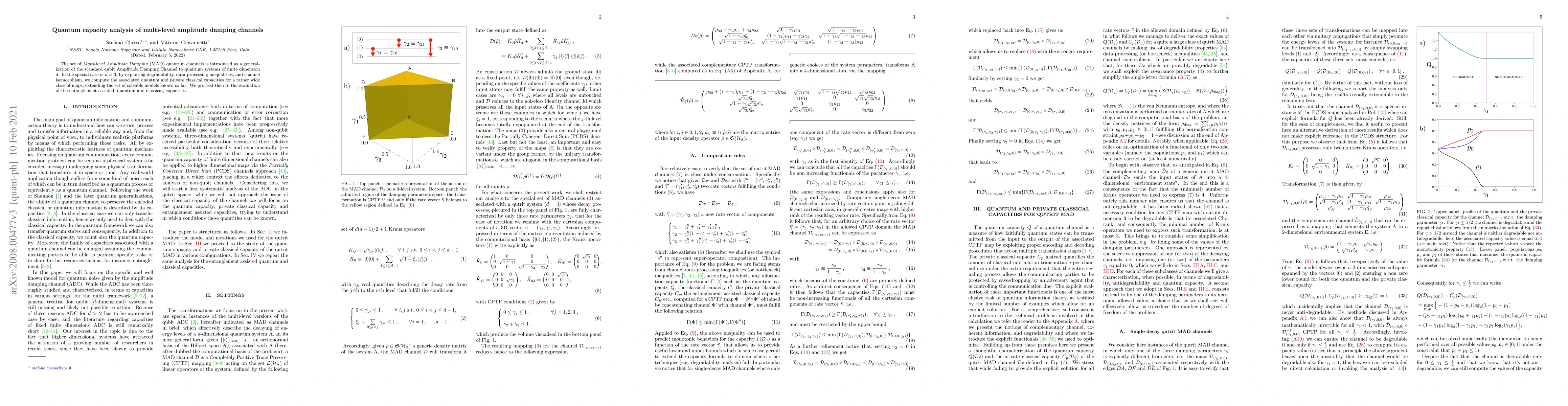 This paper generalizes the Amplitude Damping Channel to multi-level quantum systems, computes the quantum and private classical capacities for $d=3$ using degradability and data-processing inequalities, and evaluates the entanglement-assisted capacities for a broader class of models.