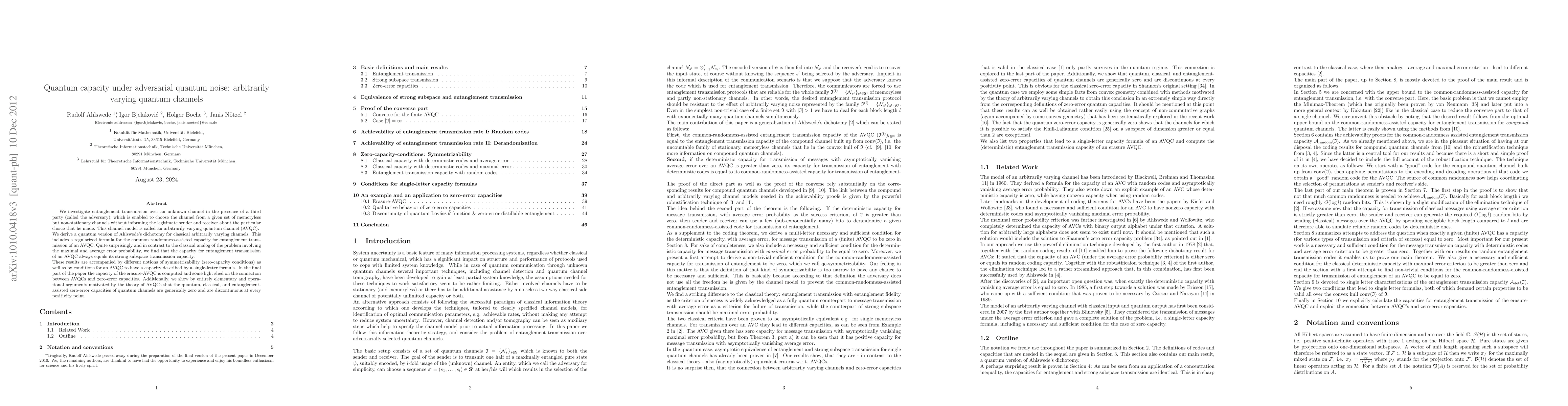 This paper explores entanglement transmission over arbitrarily varying quantum channels (AVQC) under adversarial noise, deriving a quantum version of Ahlswede's dichotomy and finding that the capacity for entanglement transmission equals its strong subspace transmission capacity. It also shows that quantum, classical, and entanglement-assisted zero-error capacities are generically zero and discontinuous.