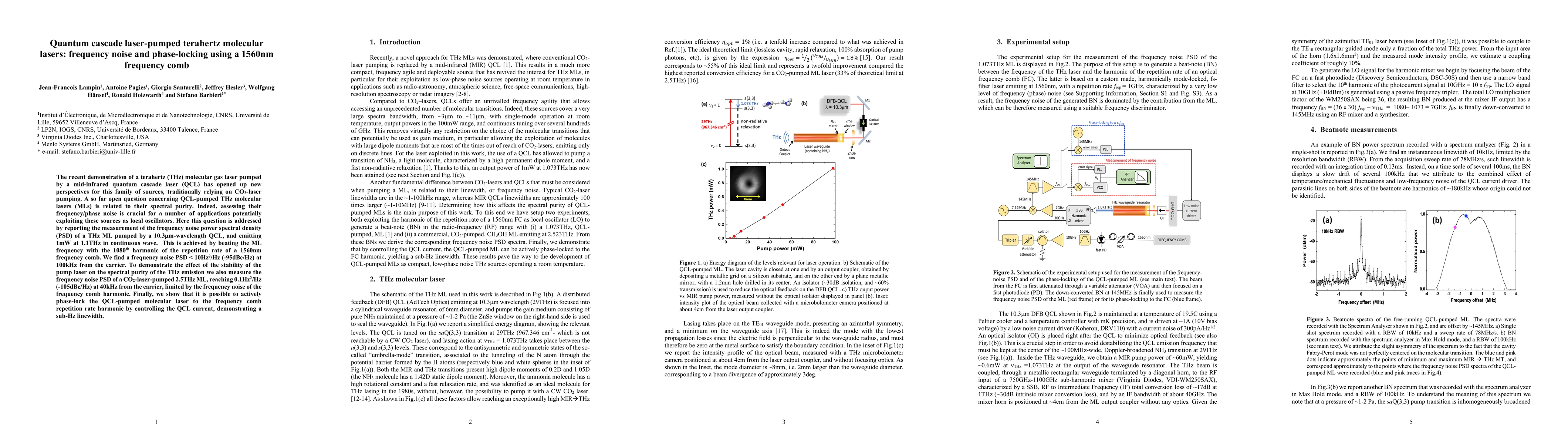 This paper investigates the spectral purity of a terahertz molecular laser (ML) pumped by a mid-infrared quantum cascade laser, measuring its frequency noise power spectral density and demonstrating phase-locking to a 1560nm frequency comb. The study finds a low frequency noise level and shows the potential for sub-Hz linewidth through active phase-locking.